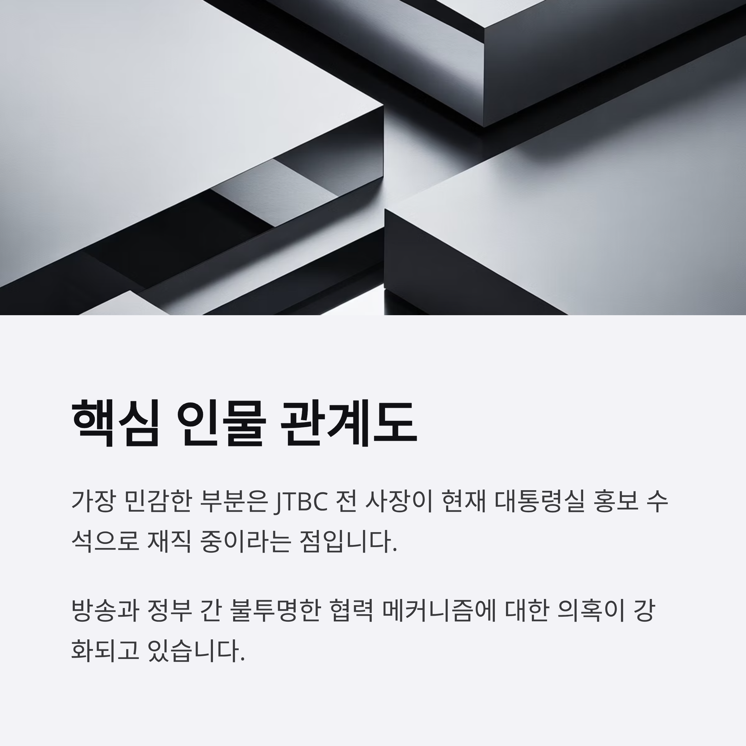 3. 대통령실 홍보 수석과 JTBC와의 관계가 주목받으며 투명성 논란이 가중되었습니다.