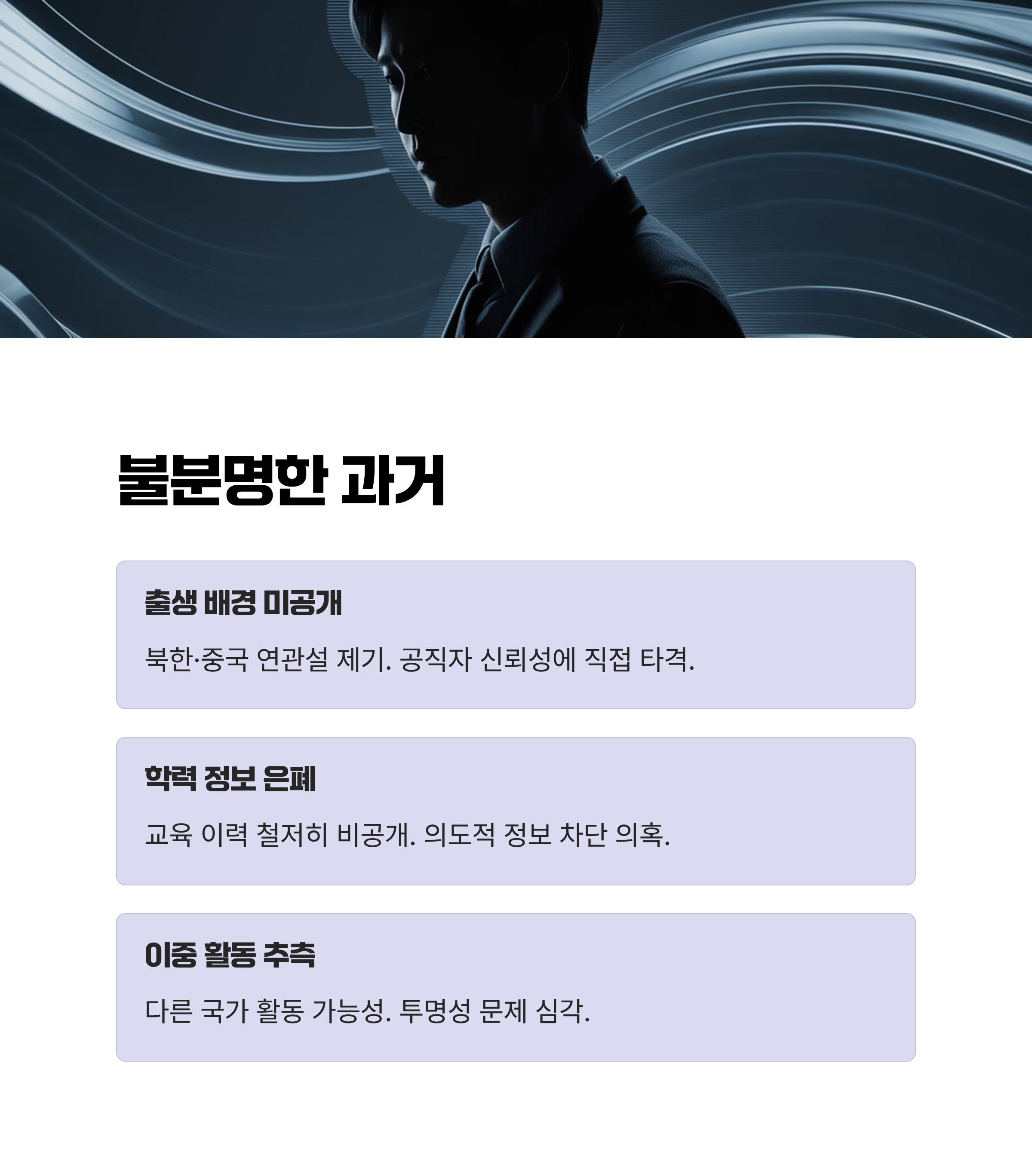 김현지의 출생지와 성장 배경이 명확히 공개되지 않으면서 여러 가설이 제기되고 있습니다. 그녀의 과거는 북한 또는 중국과 연관성이 있다는 소문, 혹은 다른 국가에서 이중적 활동을 했다는 추측까지도 나오고 있습니다. 이는 단순한 개인 정보 투명성의 문제가 아니라 공직자로서의 신뢰성에 직접 영향을 미칩니다. 이러한 의혹은 그녀의 출신지가 공무 수행에 있어 환경과 맥락을 이해하는 관점에서 중요하며, 만약 의도적으로 은폐된 사실이 있다면 문제가 더욱 심각해질 수밖에 없습니다.