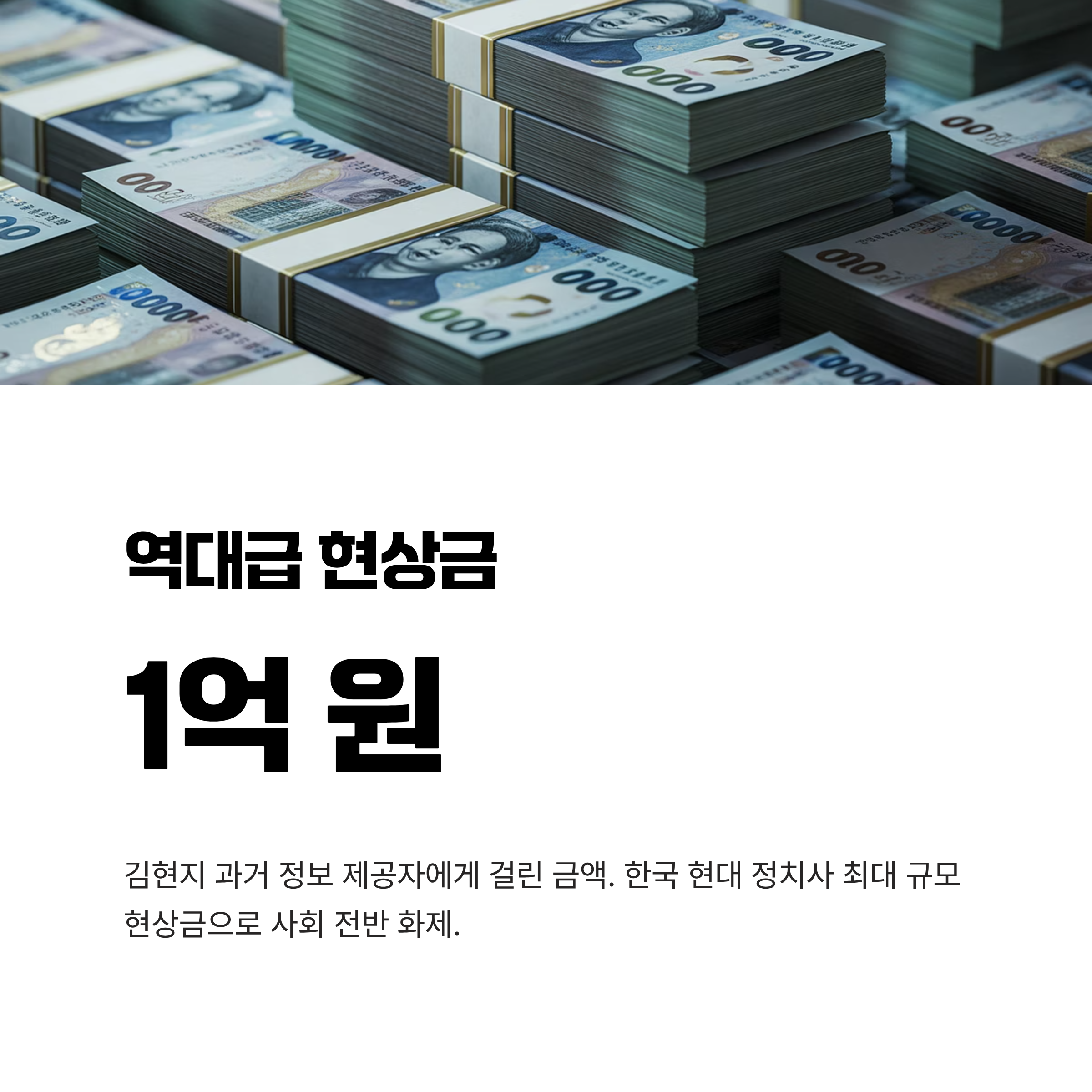 - 현상금 1억 원은 그녀의 과거를 밝힐 정보 제공자에게 걸린 역대급 액수로, 한국 현대 정치 이슈 중심에 자리 잡았습니다.
