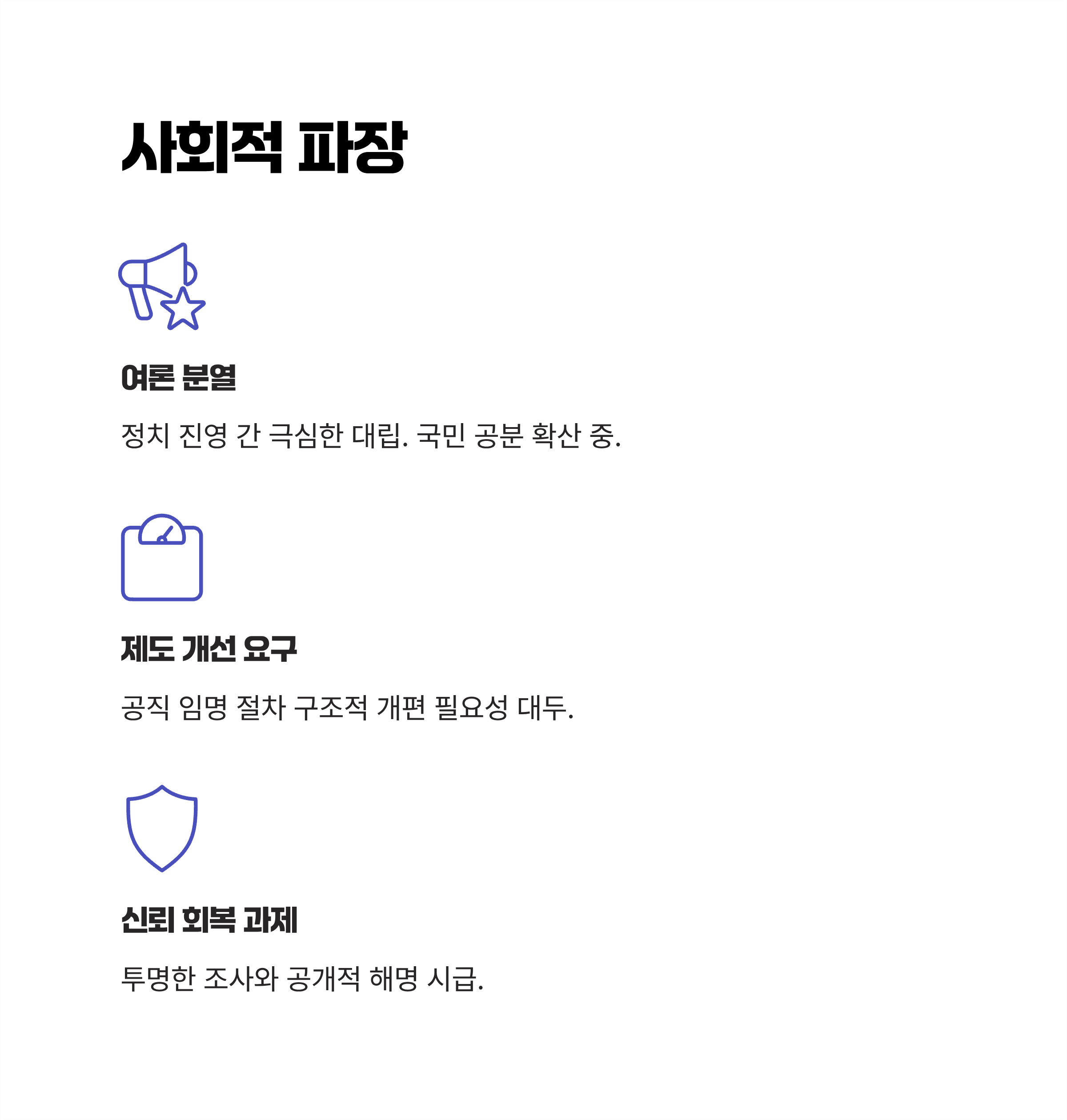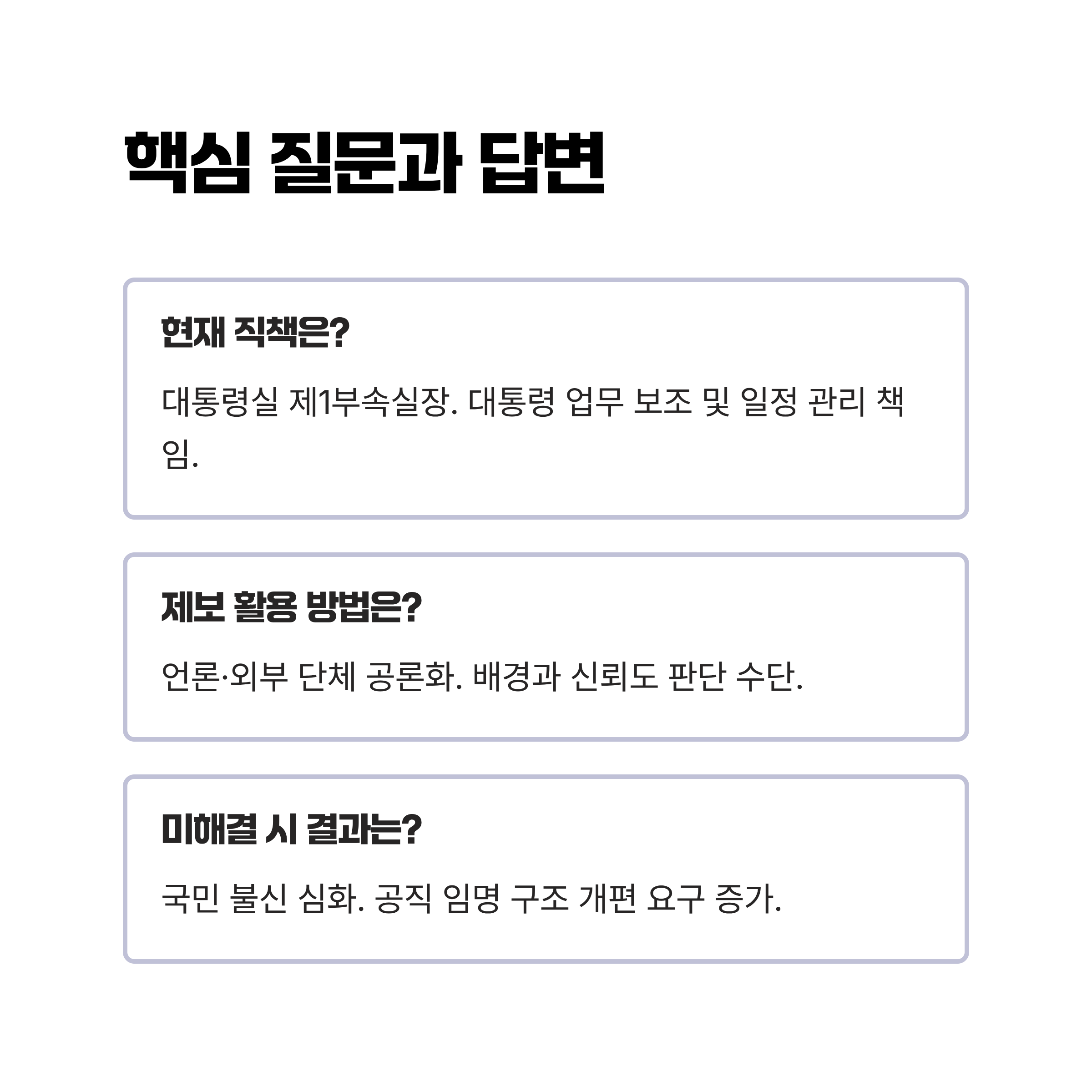 | A. 논란이 계속될 경우, 공직자에 대한 국민 불신이 심화되고, 공직 임명 절차에 대한 구조적 개편 요구가 증가할 가능성이 큽니다. |