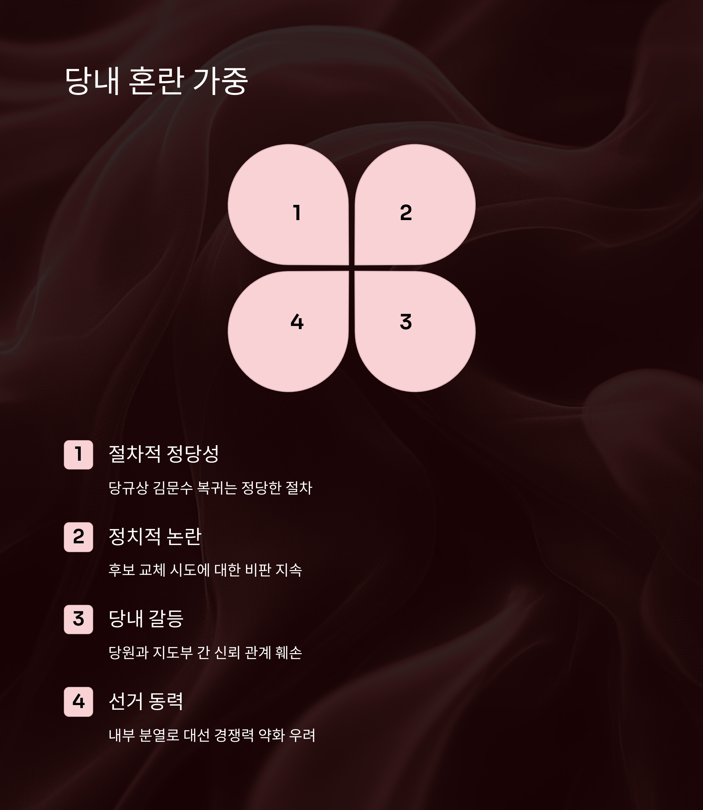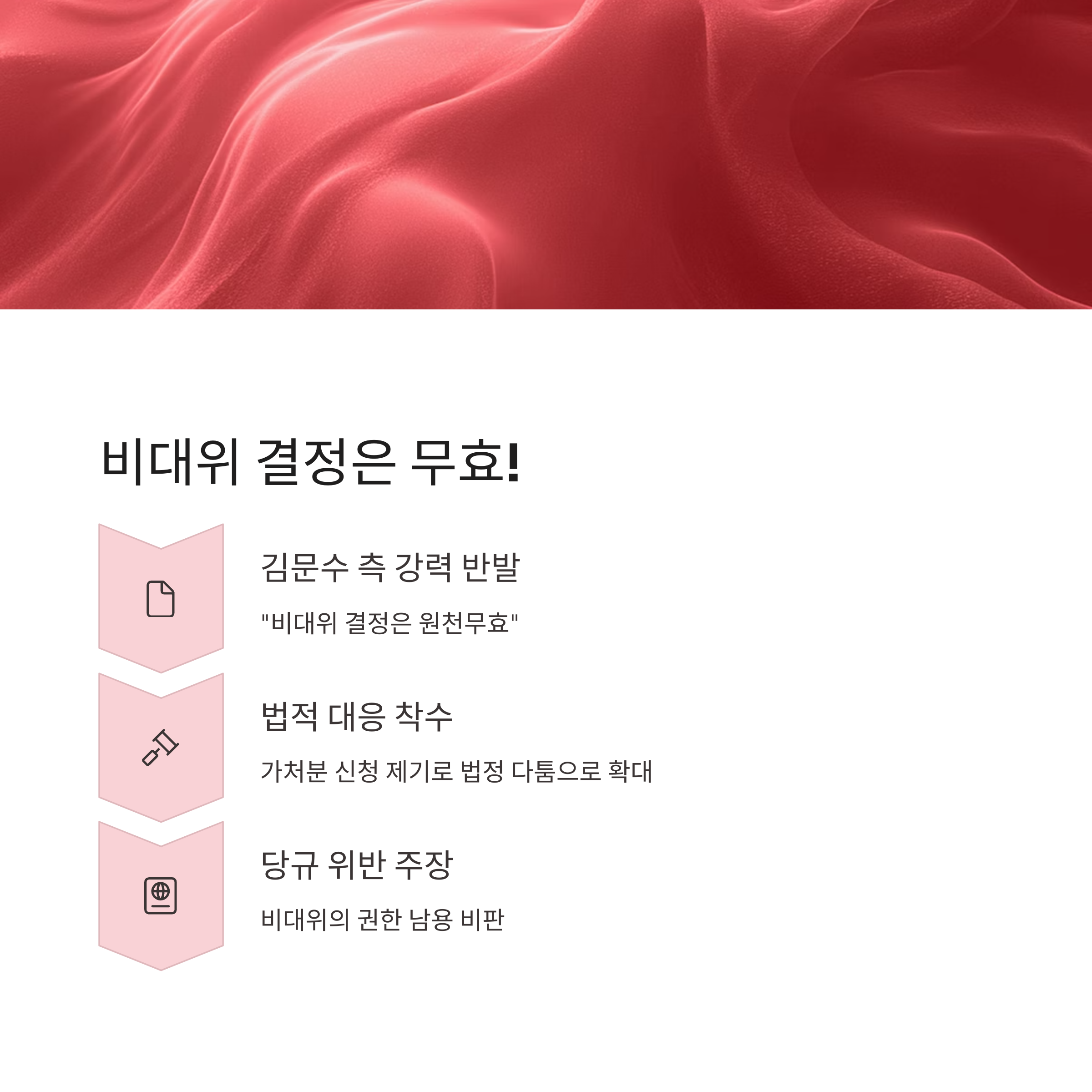 - 김문수 측은 비대위 결정이 무효라며 가처분 신청까지 제기.