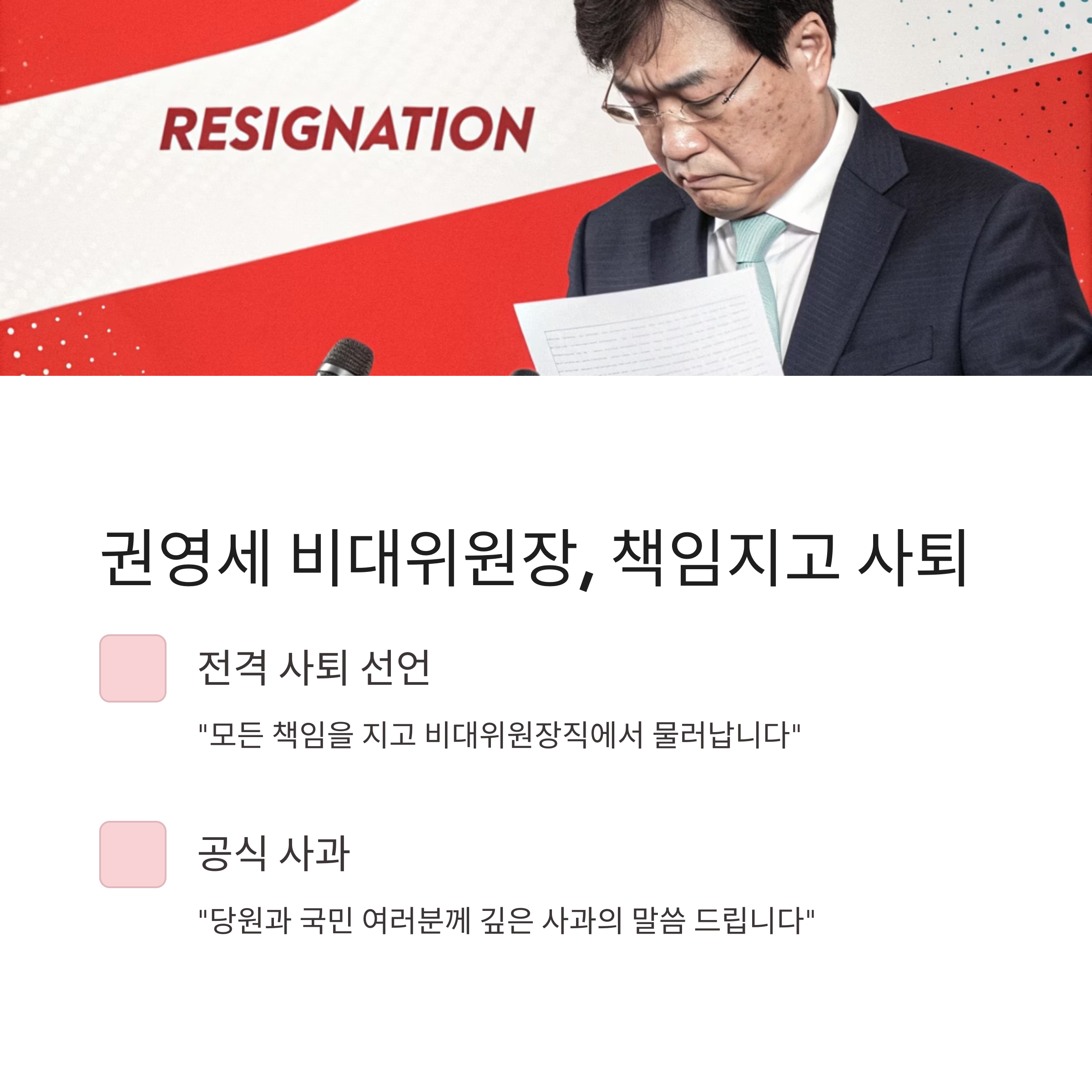 - 권영세 비대위원장은 책임을 지고 사퇴, 당은 혼란 국면으로 진입.