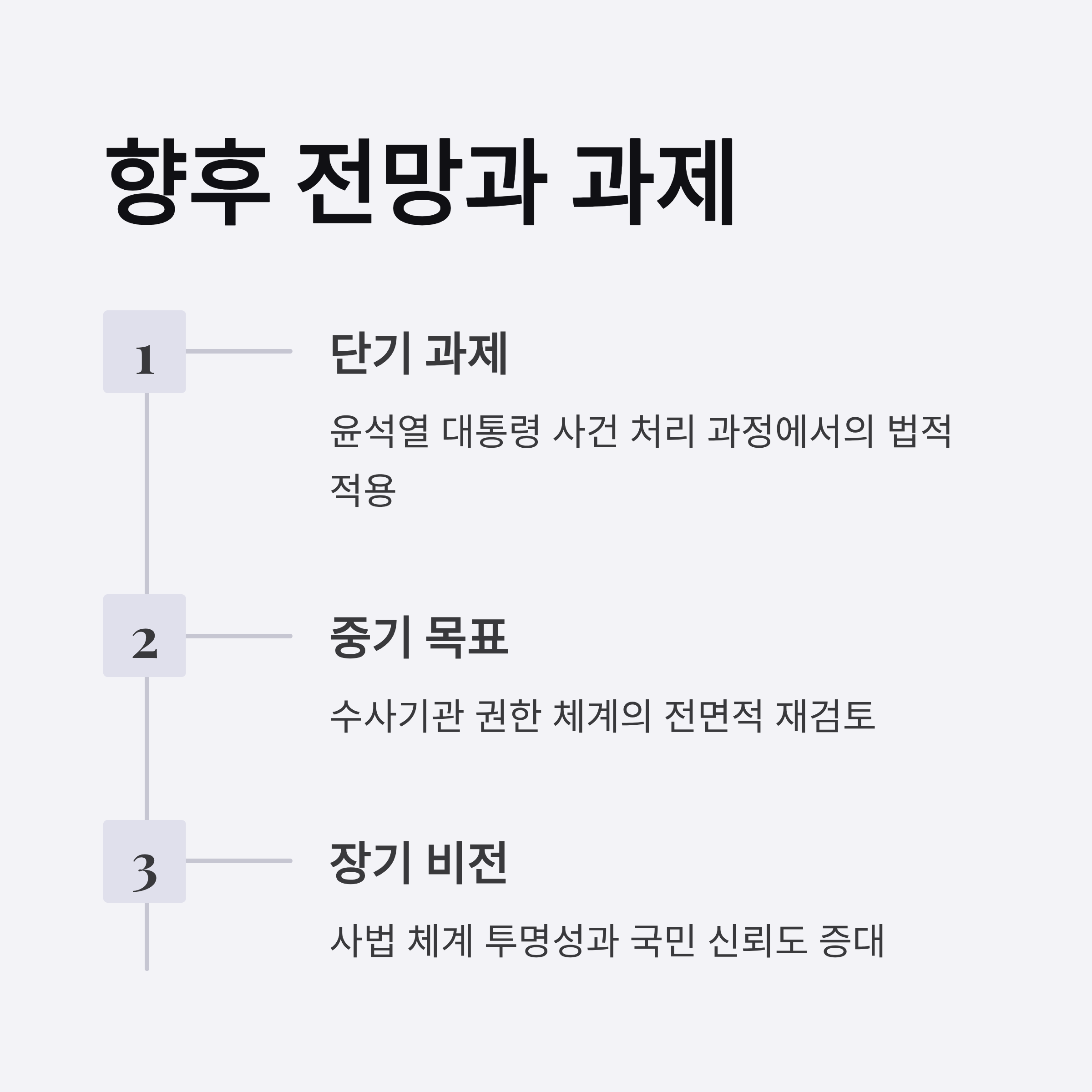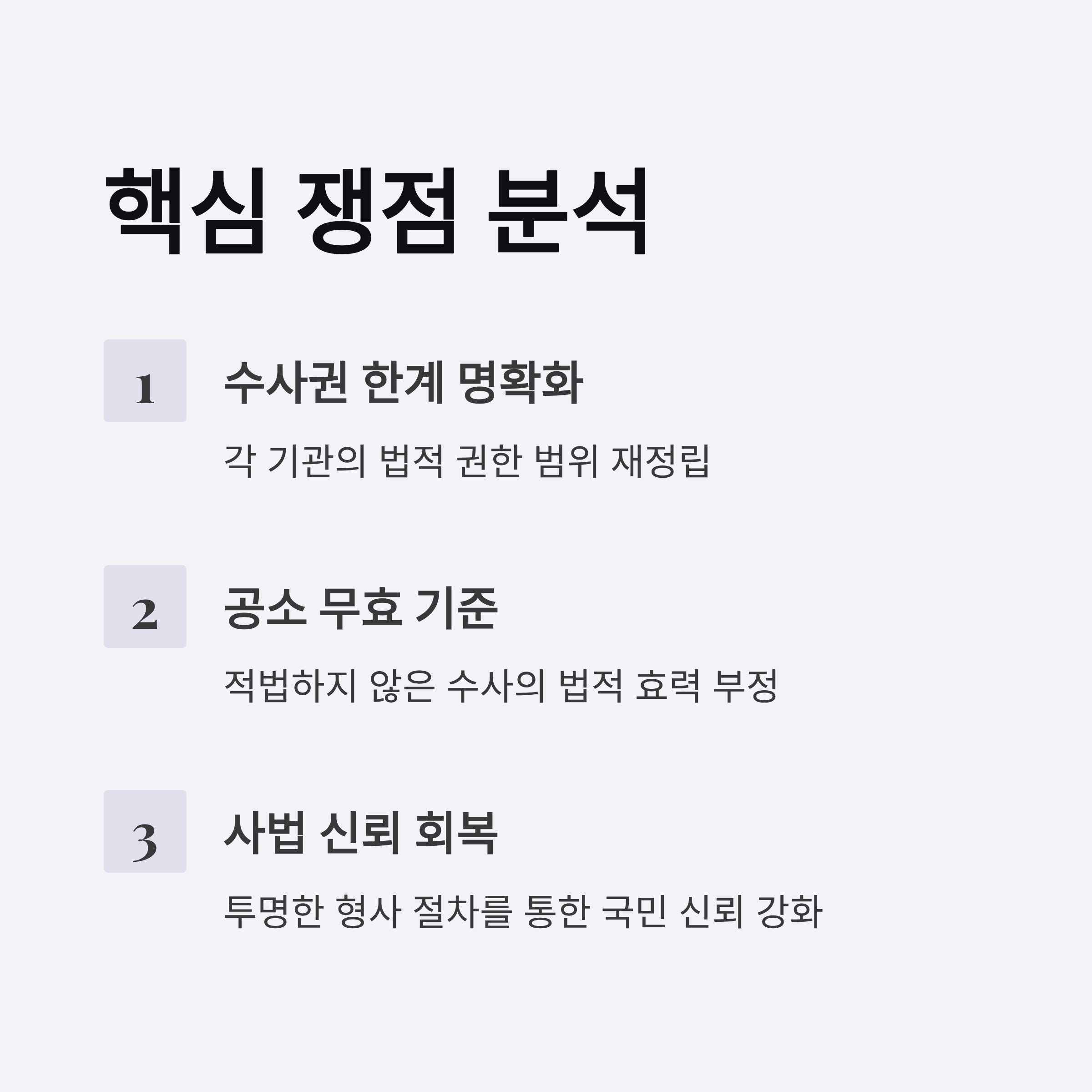 더 나아가, 수사기관들이 각자 자신의 권한 범위 내에서만 작업해야 한다는 메시지가 담겼다. 검찰, 경찰, 공수처 등 여러 기관 간 충돌이 예기될 수 있는 상황에서 이번 판결은 각각의 법적 권한 경계를 재조정하는 중요한 판단으로 보여진다.