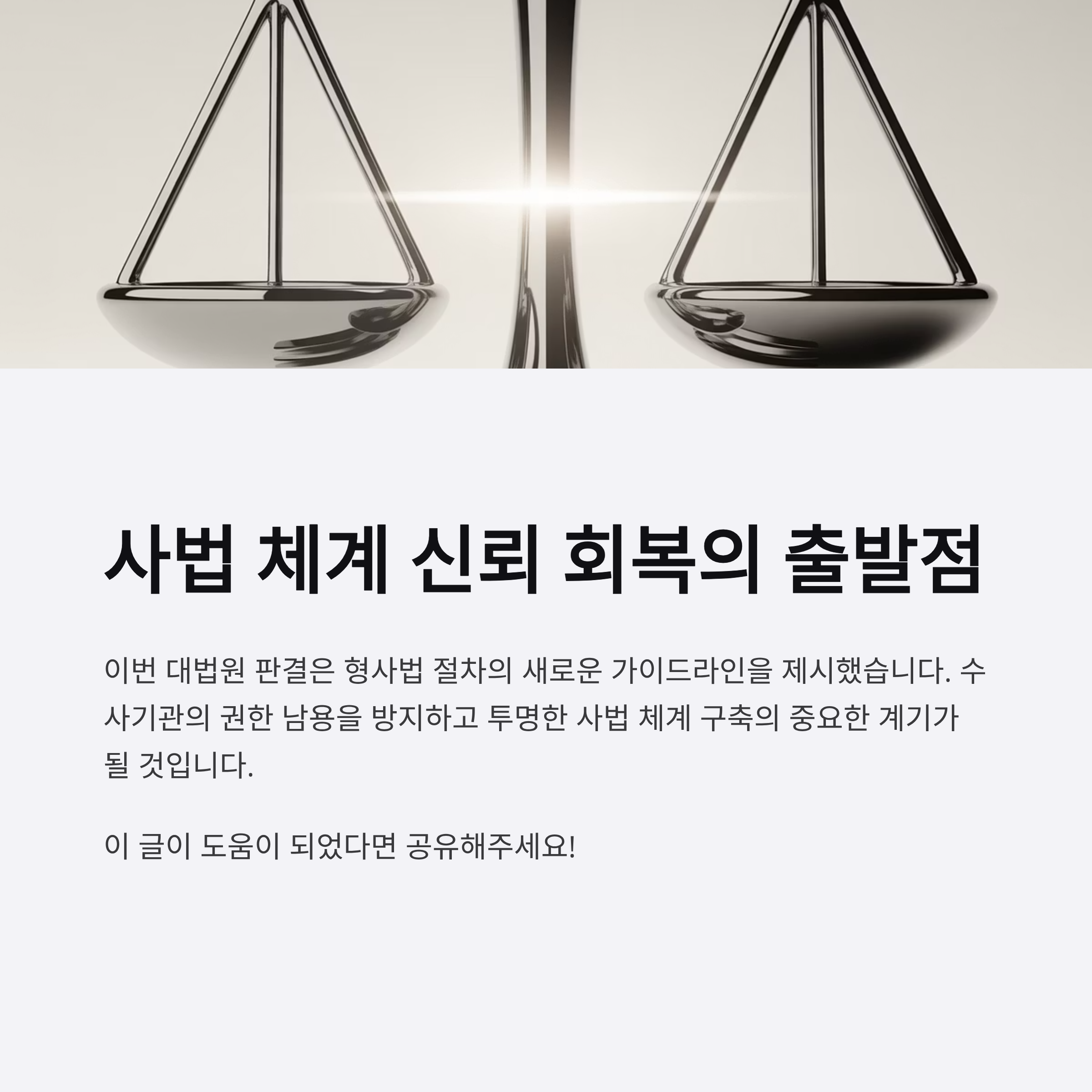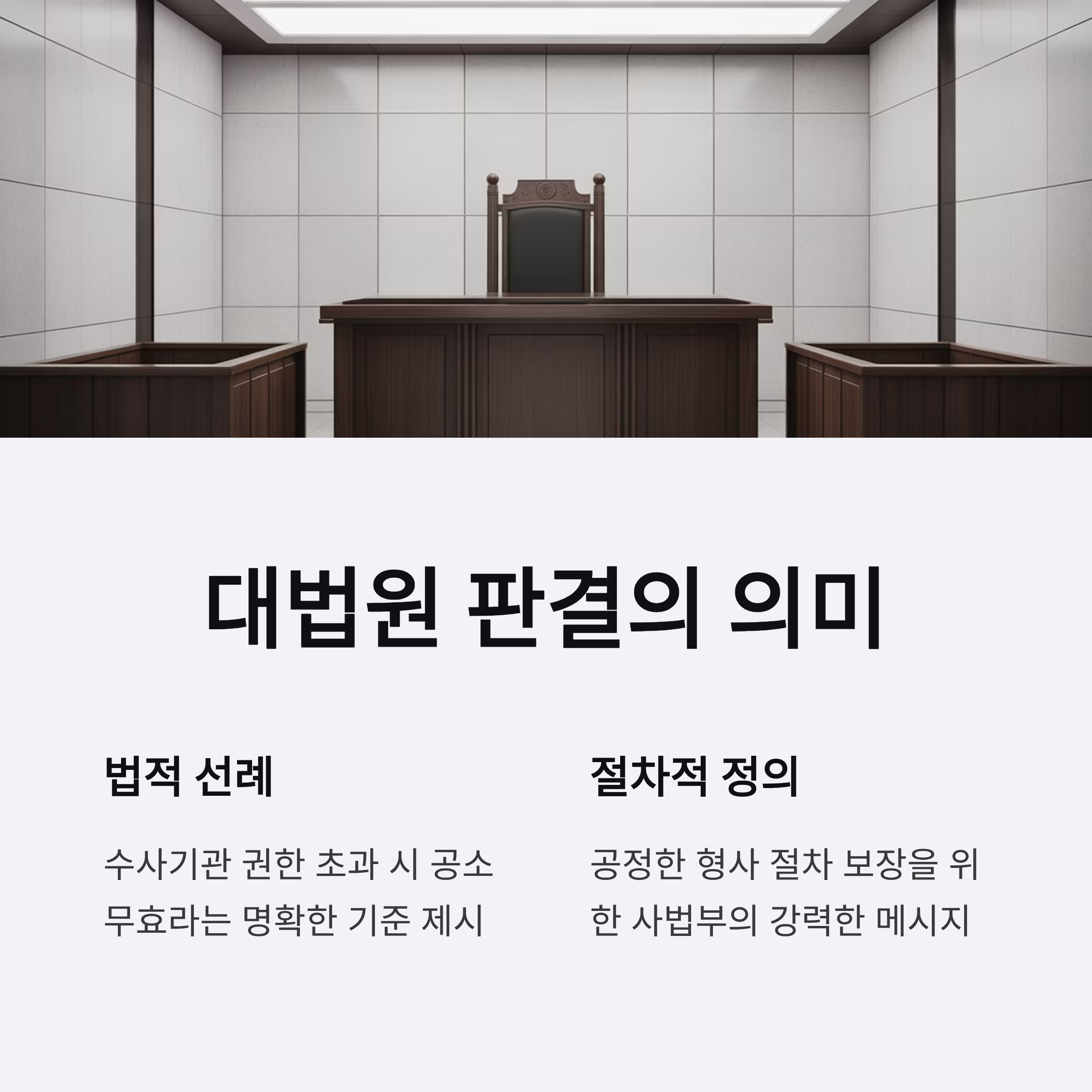 이번 대법원 판결은 단순히 특정 사건뿐 아니라 대한민국 형사 사법 체계 전반에 지대한 영향을 미칠 것으로 보인다. 수사기관이 권한을 초과했을 경우 공소 자체가 무효가 될 수 있다는 명확한 기준은 형사법 절차의 새로운 가이드라인을 설정했다.