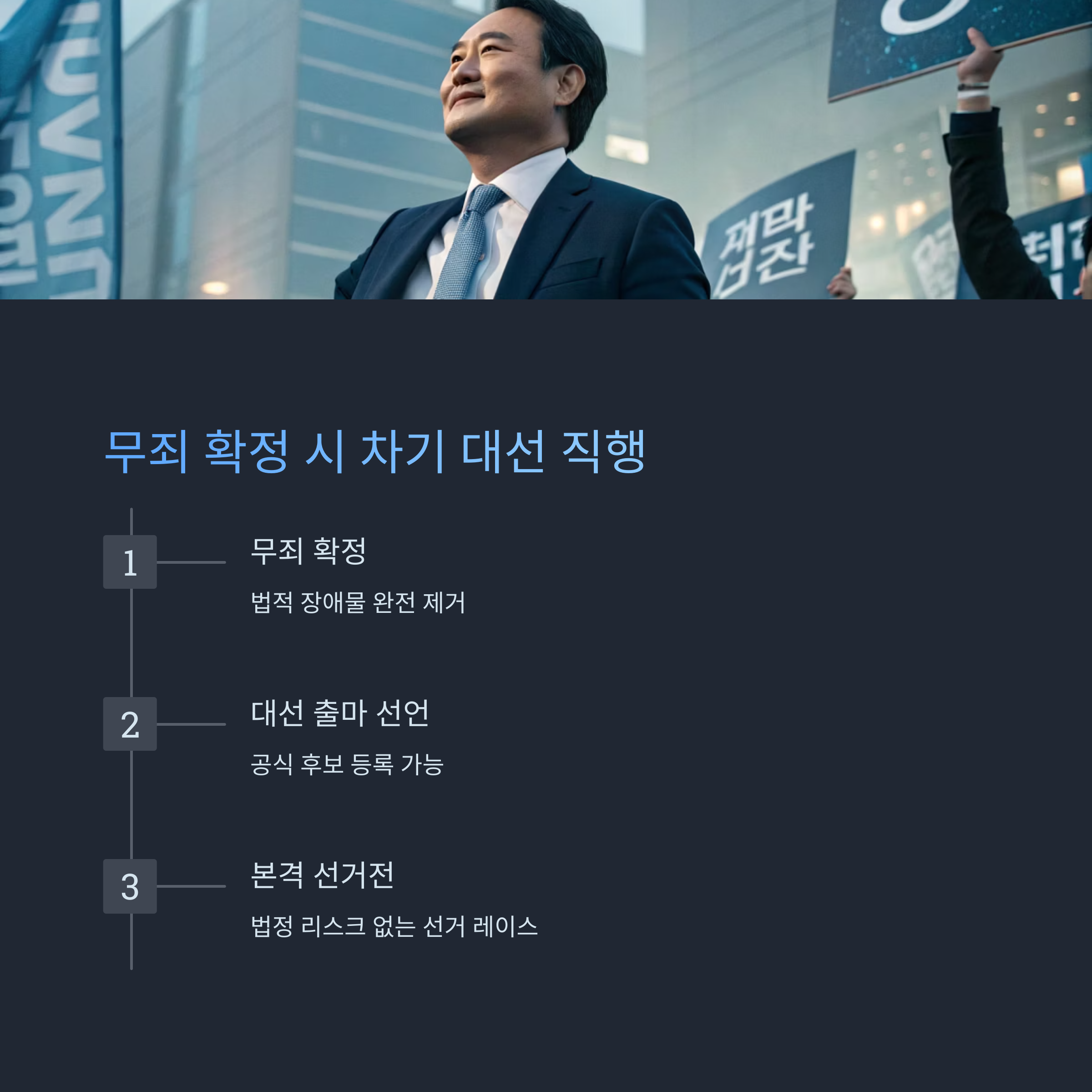 첫째, 상고 기각으로 무죄가 확정될 경우 이재명 대표는 사법 리스크 없이 정치적 활로를 열 수 있습니다.