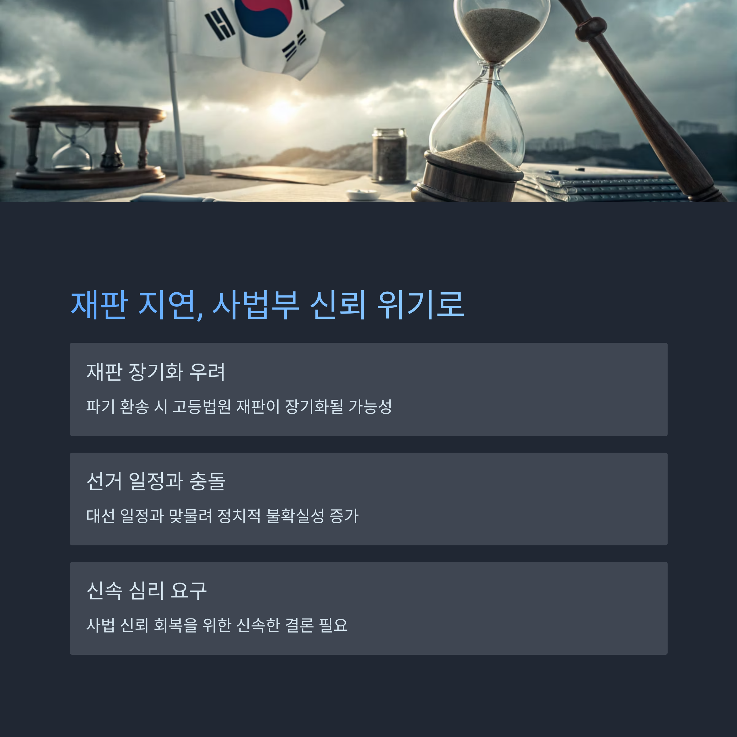 상고 기각, 파기 환송, 파기 자판이라는 세 가지 가능성은 각각 정치적, 법적 함의를 지니며 향후 대한민국 정치판에도 큰 영향을 미칠 수 있습니다. 특히 파기 환송 시 고등법원의 정치적 부담과 판결 지연 가능성은 사법부의 신뢰를 근본적으로 흔들 수 있습니다.