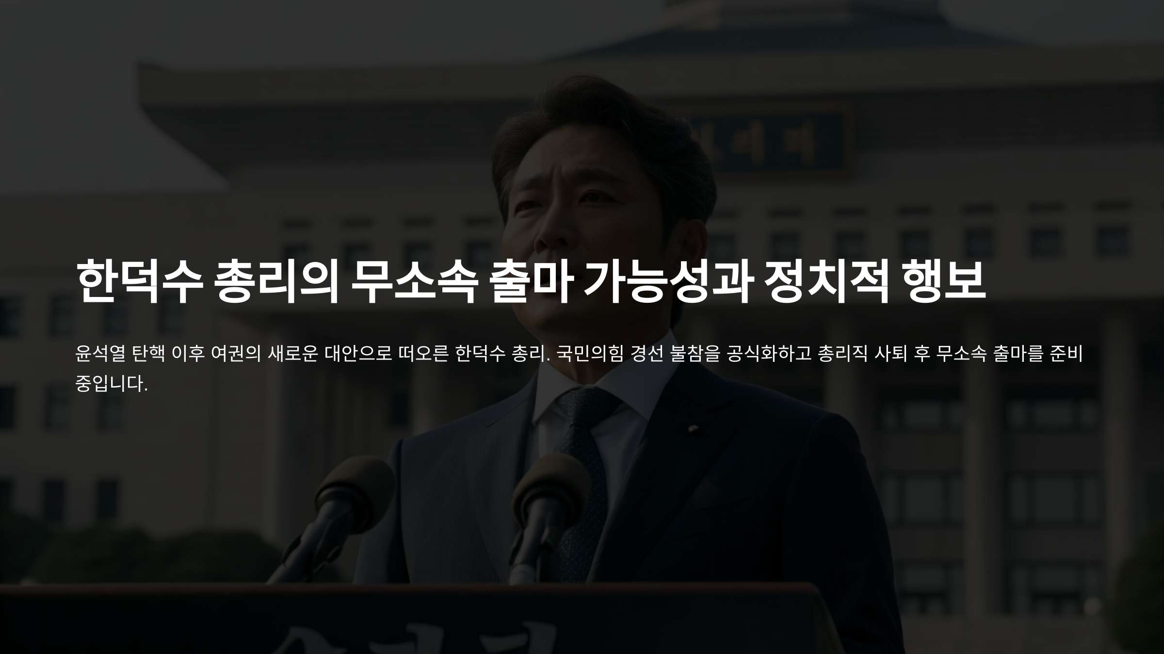 2025년 6월3일 21대 대선을 앞두고 한국 정치권이 다시 한 번 격동의 중심에 섰습니다. 윤석열 대통령의 탄핵 이후 여권 내 권력 공백과 정체성 재정립을 둘러싼 움직임이 활발하게 일고 있는 가운데, 한덕수 국무총리의 무소속 출마 가능성이 정치권을 흔들고 있습니다. 그는 국민의힘 경선에 참여하지 않겠다는 의지를 보이며, 무소속으로 출마한 후 보수 진영의 후보 단일화를 추진하겠다는 전략을 내세우고 있습니다.