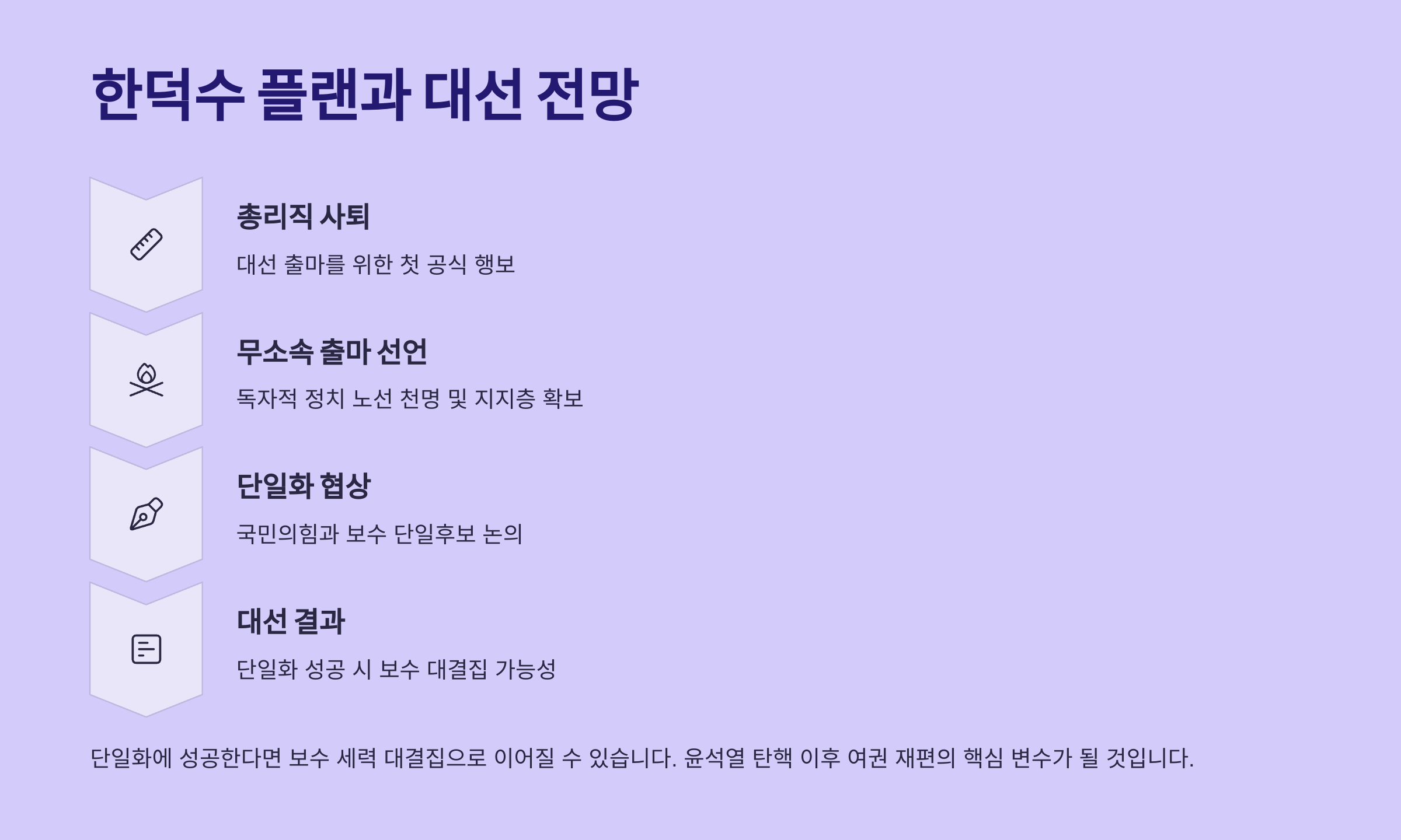 2025년 대선은 단순한 승자와 패자를 가르는 선거가 아닙니다. 탄핵 정국 이후 정치적 회오리 속에서, 한덕수 총리의 무소속 출마와 보수 진영의 단일화 전략은 한국 정치의 미래를 결정짓는 중대한 분기점이 될 것입니다. 윤석열 정신을 이어갈 수 있는 후보가 누구인가를 놓고 벌어지는 내부 경쟁은 곧 보수의 정체성 논쟁이기도 합니다.