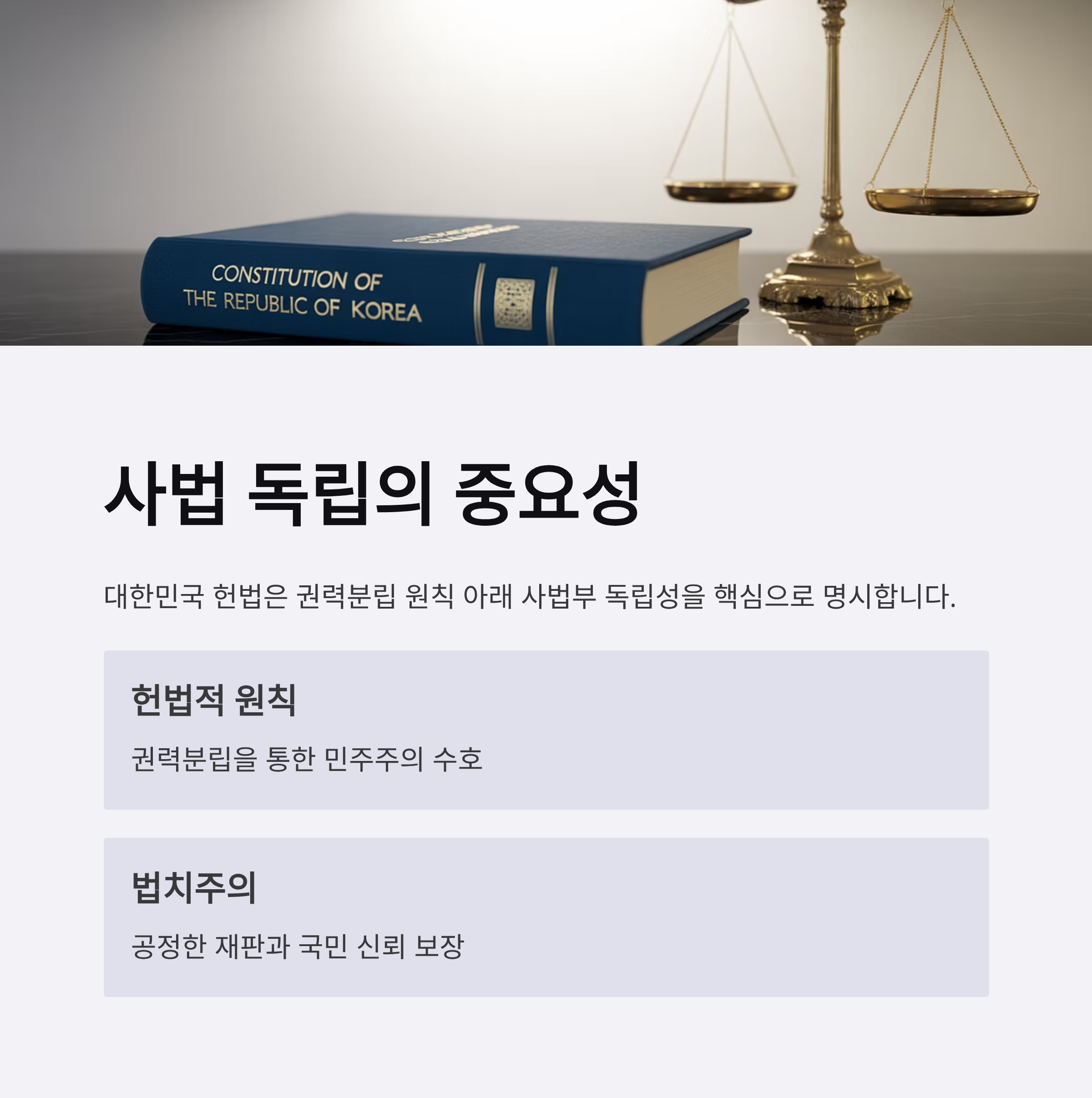 4. 헌법상 사법부의 독립성과 외부 간섭 금지를 유지하는 것은 대한민국 민주주의의 근간을 지키는 중요한 요소입니다.