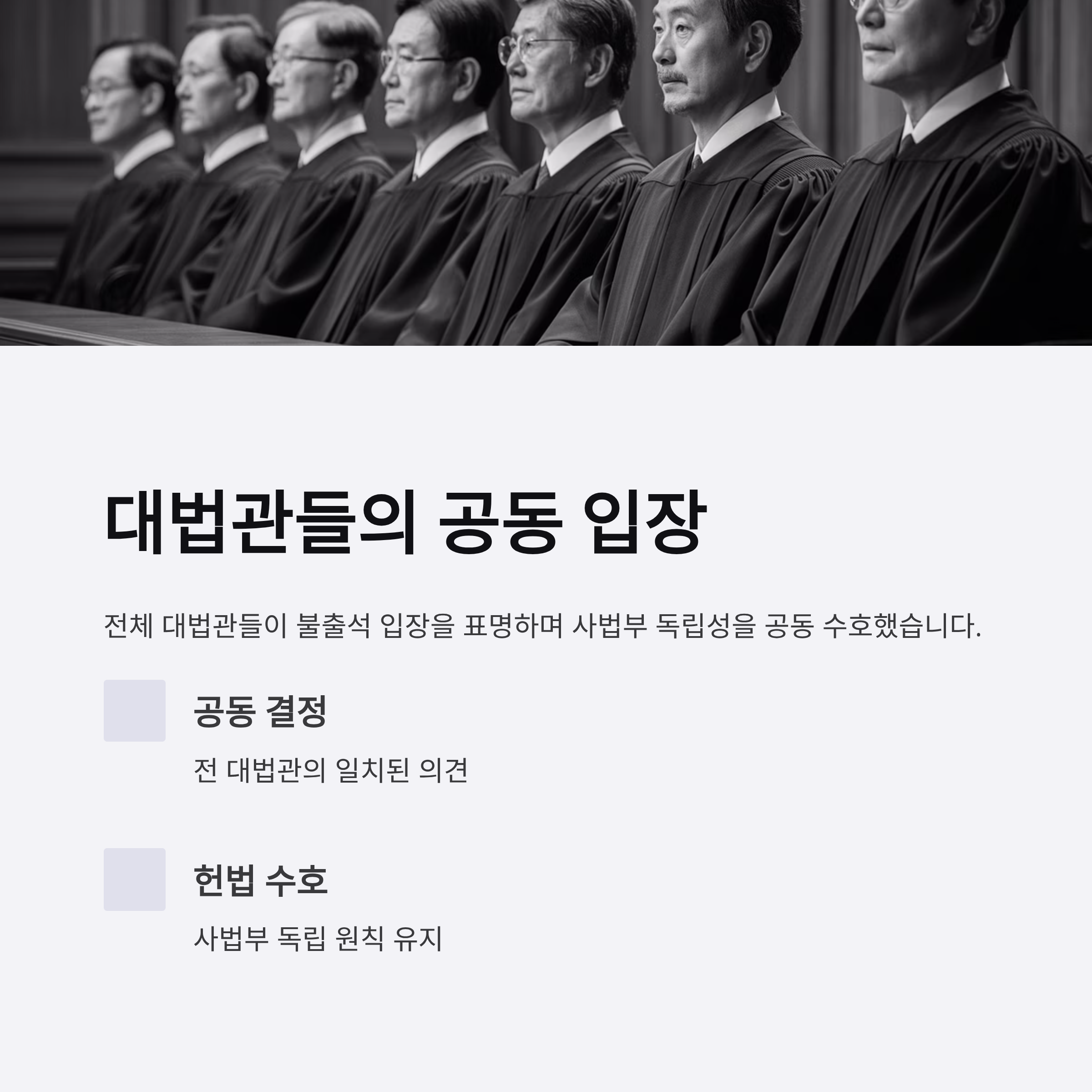 2. 대법관들의 불출석 입장은 사법부의 독립성과 헌법적 원칙을 유지하려는 공동 노력의 일부입니다.