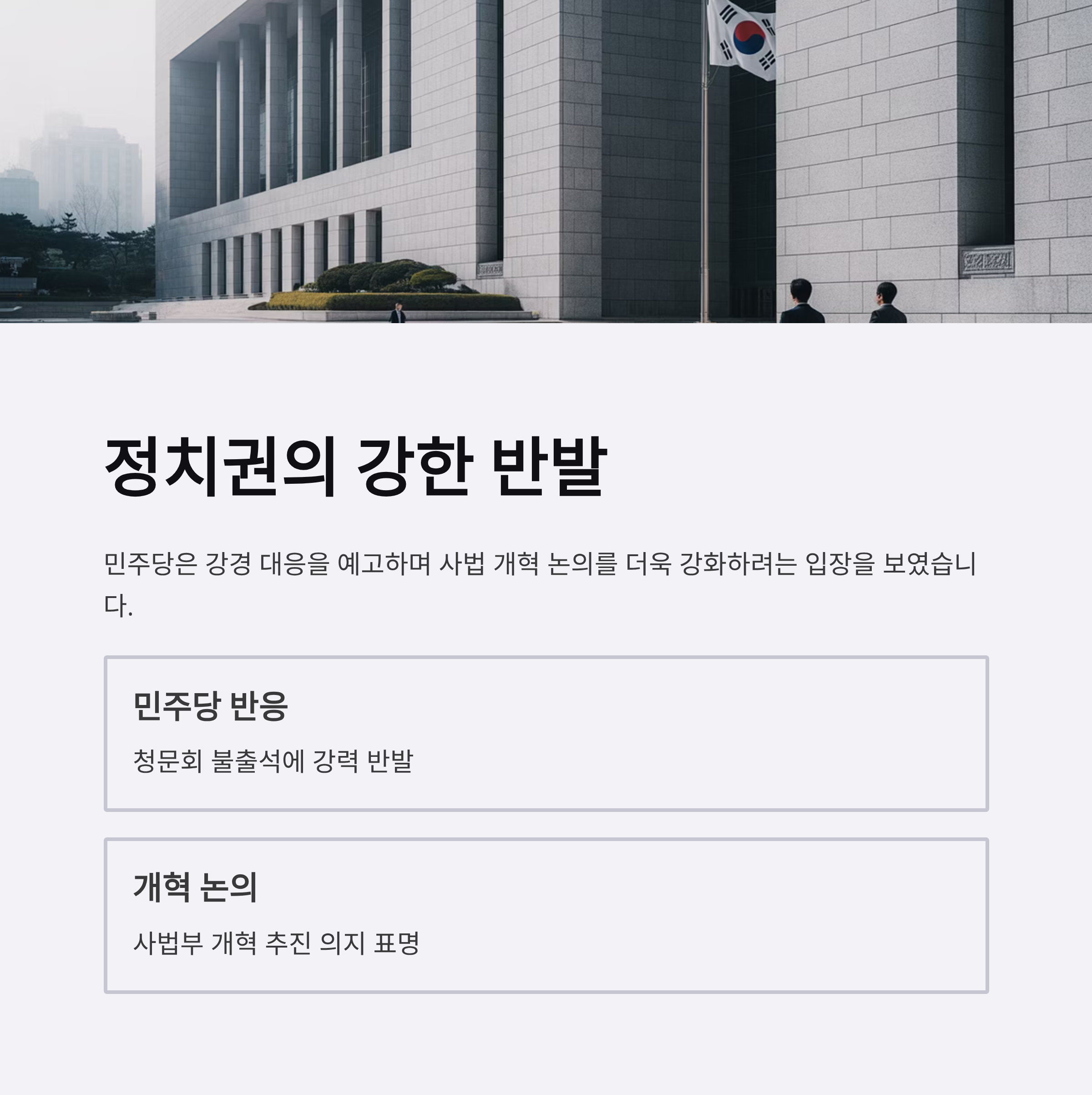 3. 정치권, 특히 민주당은 강하게 반발하며, 이를 빌미로 사법 개혁 논의를 더욱 강화하려는 입장을 보였습니다.