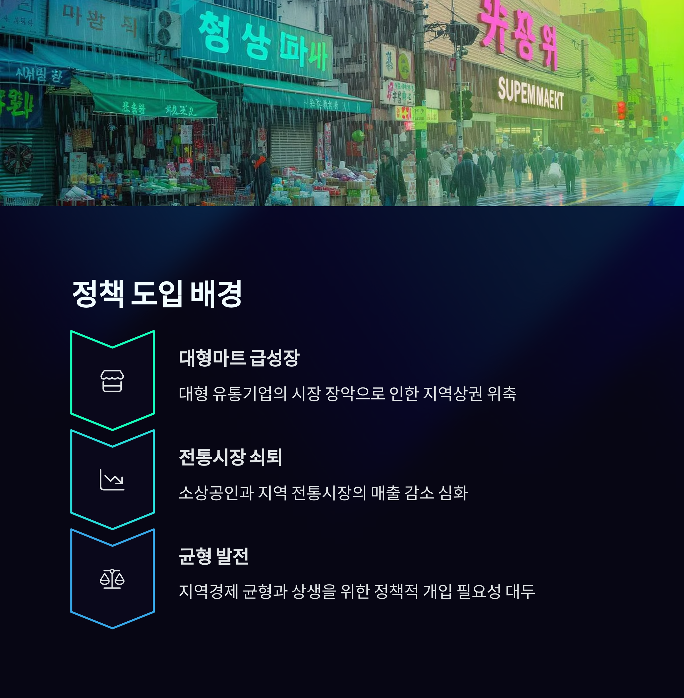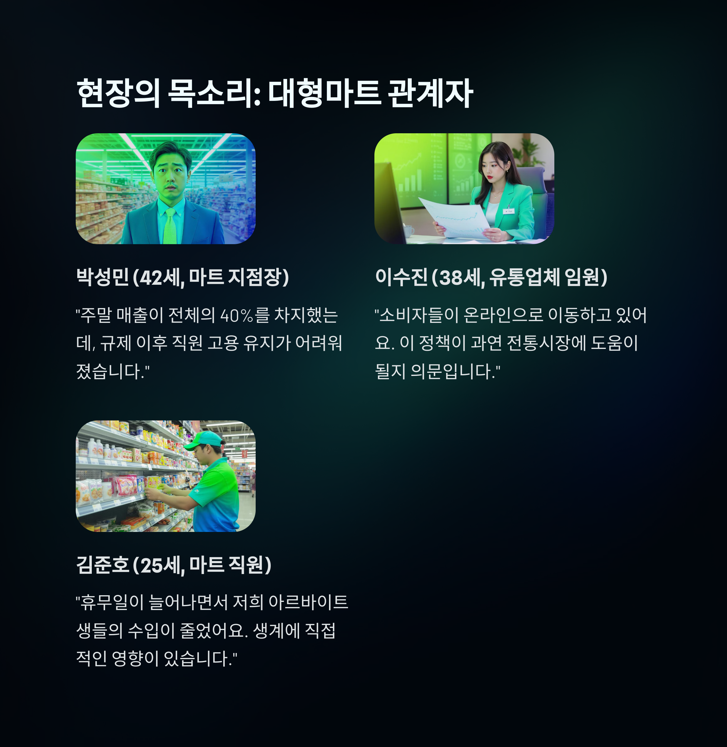 대형마트 규제, 전통시장 활성화, 소비자 쇼핑 패턴, 지역 상권 보호, 주말 의무휴업 정책