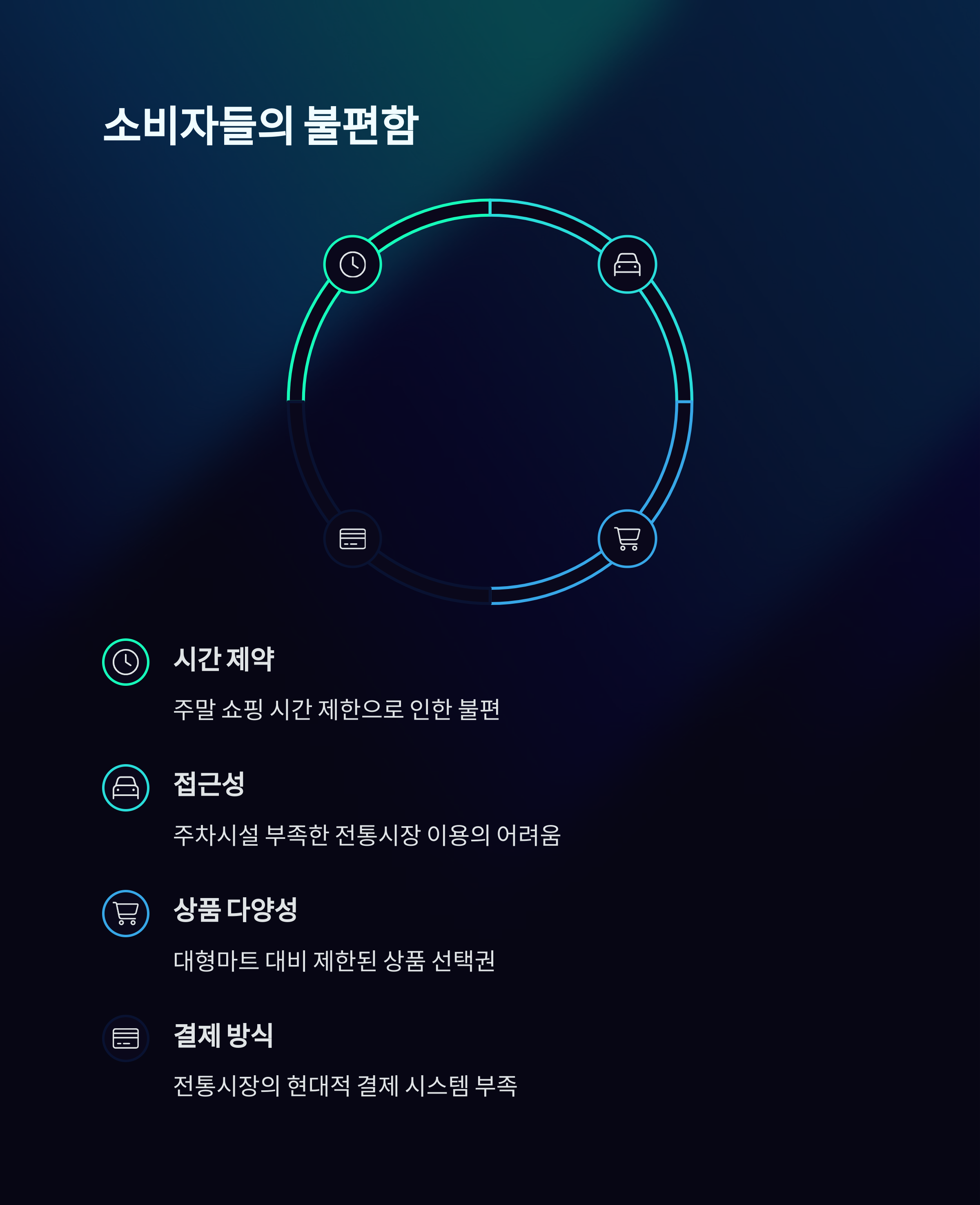 | A. 소비자 입장에서는 가까운 전통시장 및 소규모 상점의 활용, 온라인 쇼핑 등의 대안을 찾아나가는 것이 중요합니다. 또한, 전통시장에서도 현대화된 쇼핑 환경과 품질 보장이 필수적입니다. |