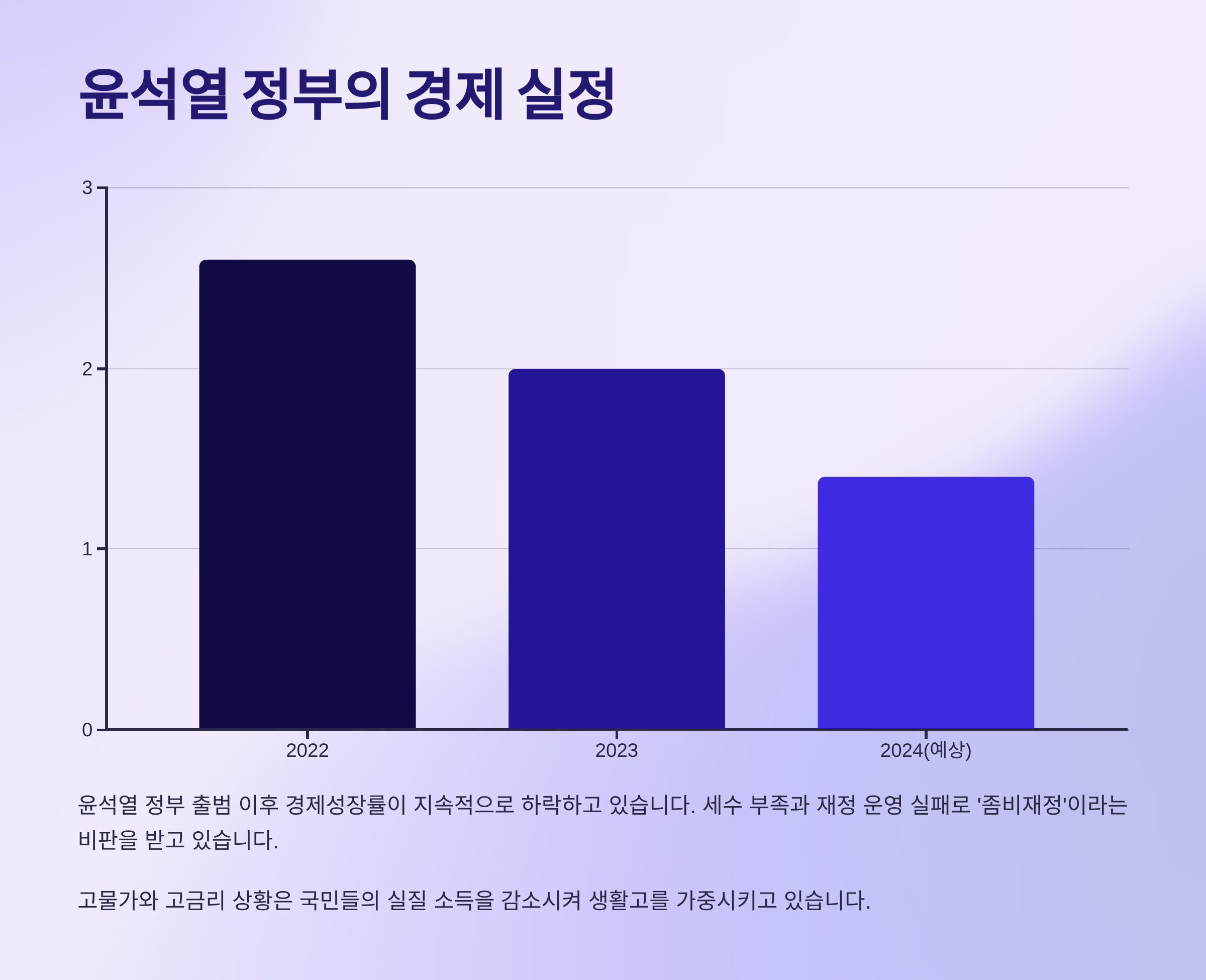 A. 고물가와 고금리 상황에서도 부자 감세 정책을 유지하며 민생에 도움이 되지 않았다는 점과, 내란 관련 인사 등용이 정치·경제적 불안을 가중시킨다는 비판이 핵심입니다.
