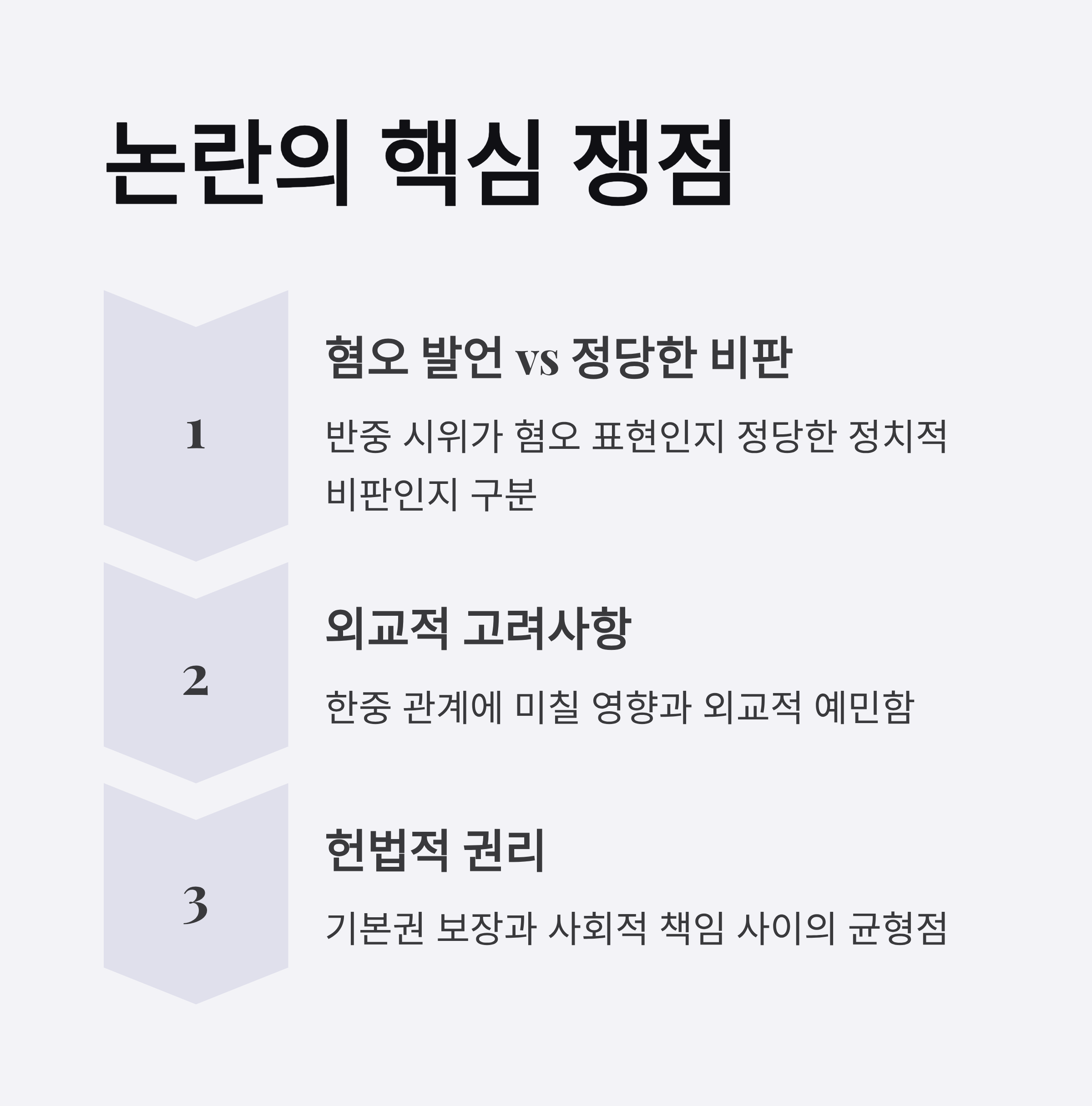 관련 태그: 표현의 자유, 헌법적 권리, 반중 시위, 명동 시위, 사회적 논란, 국제 관계, 경찰 조치