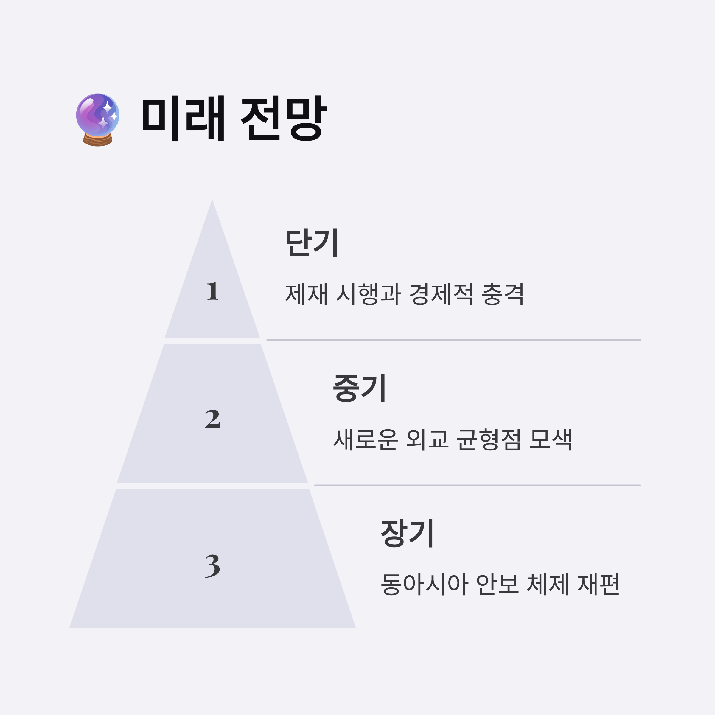 미국의 금융 제재 등 국제적 대응은 한국의 경제 및 정치적 상황에 상당한 압박을 가하게 될 것입니다. 특히 국제 금융망에서의 고립 가능성은 국내 경제 전반에 심각한 영향을 미칠 수 있으며, 이러한 결과가 북한 및 중국과의 외교 관계에서 새로운 균형점을 요구하게 될 것입니다.