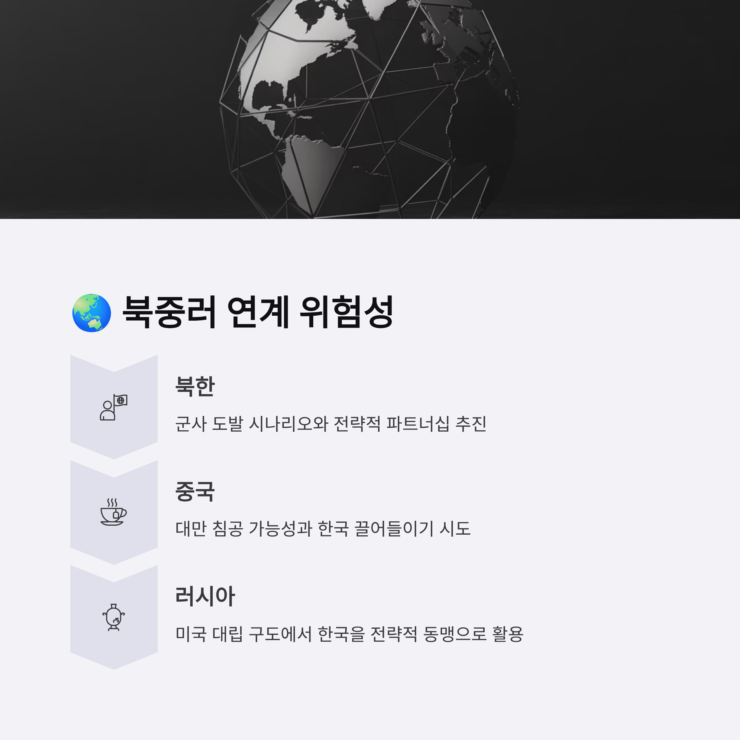 북중러와의 연계 가능성으로 인한 지정학적 긴장이 고조되고 있습니다.