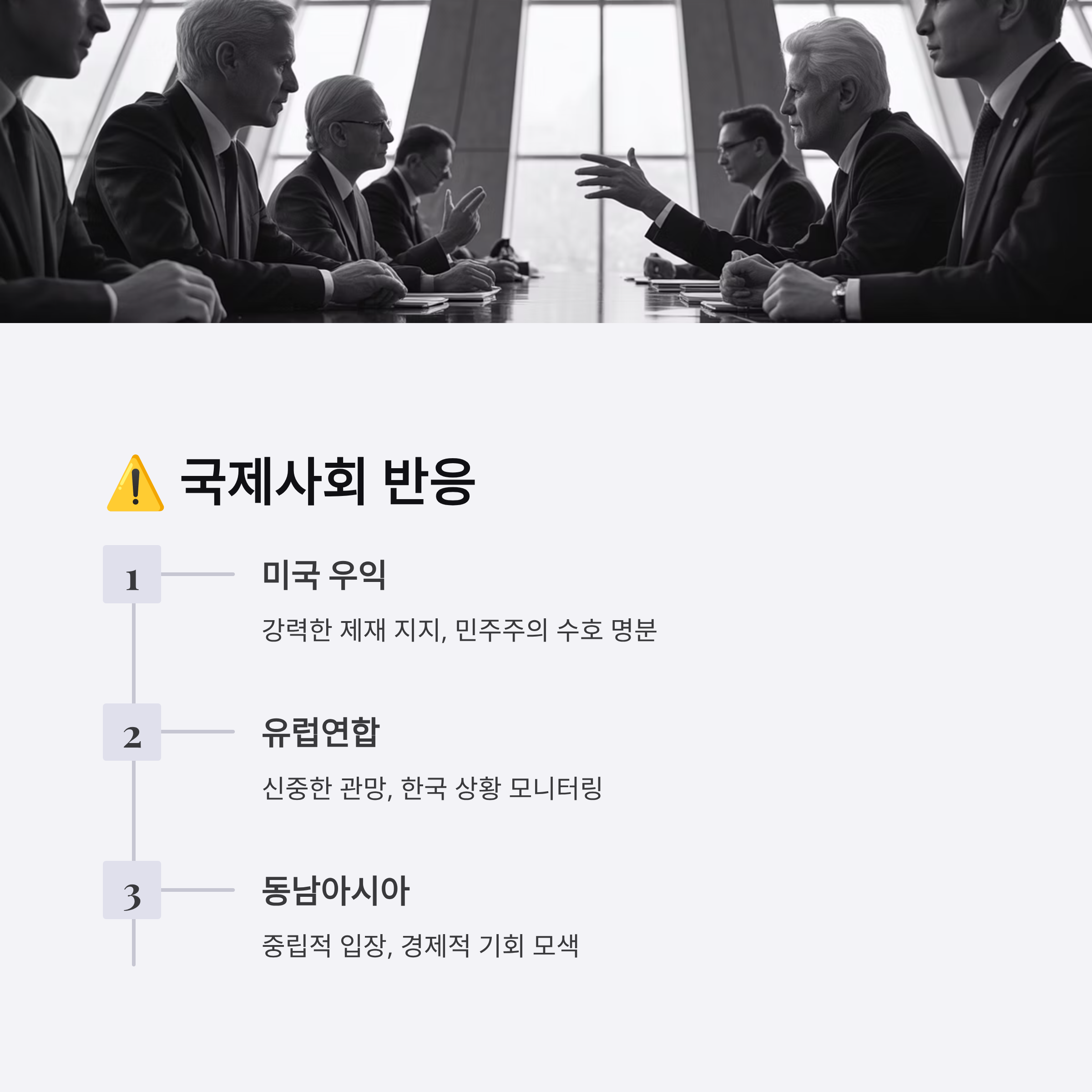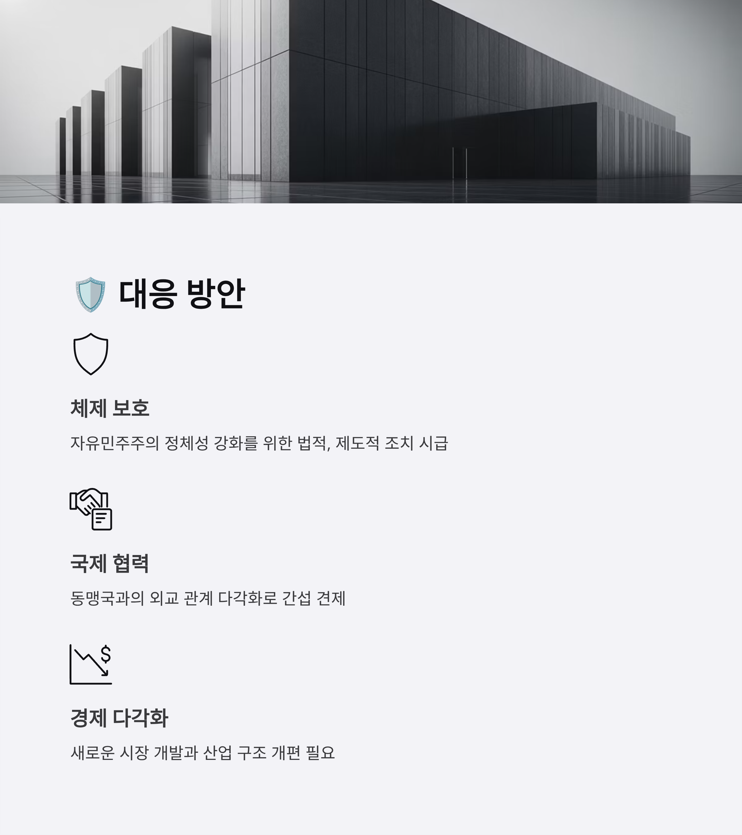 중국의 대만 침공 가능성, 북한의 한국에 대한 군사 도발 시나리오 등이 복합적으로 작용하며, 한국의 체제 논란이 단순히 국가 내부 사안으로 머물지 않고 동아시아 전체의 안보와 연결된 국제적 문제로 확대될 수 있음을 보여줍니다.