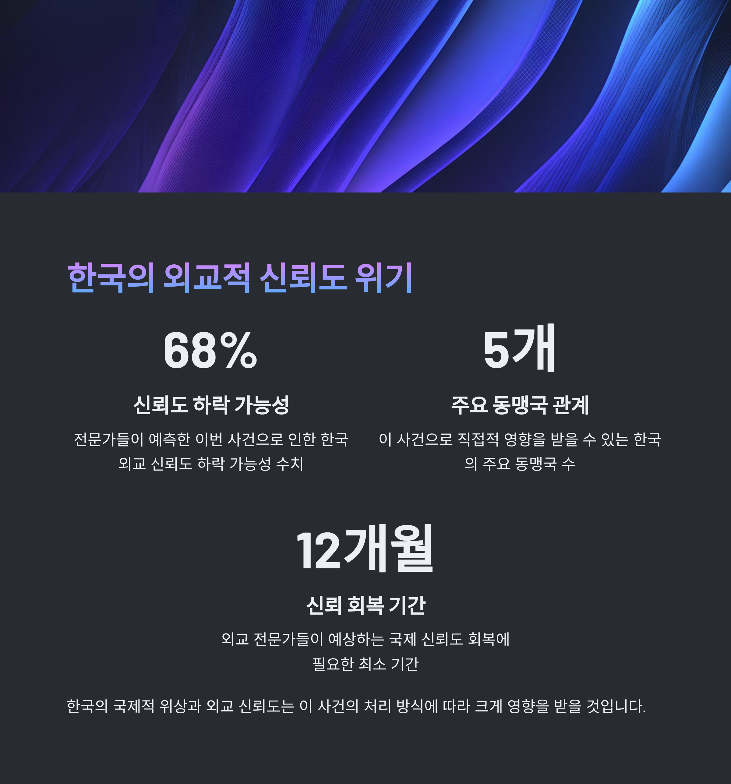 5. 이 문제가 한국 외교 및 국제 신뢰도에 영향을 미칠 가능성이 높아 정부의 신속한 대처가 필요합니다.