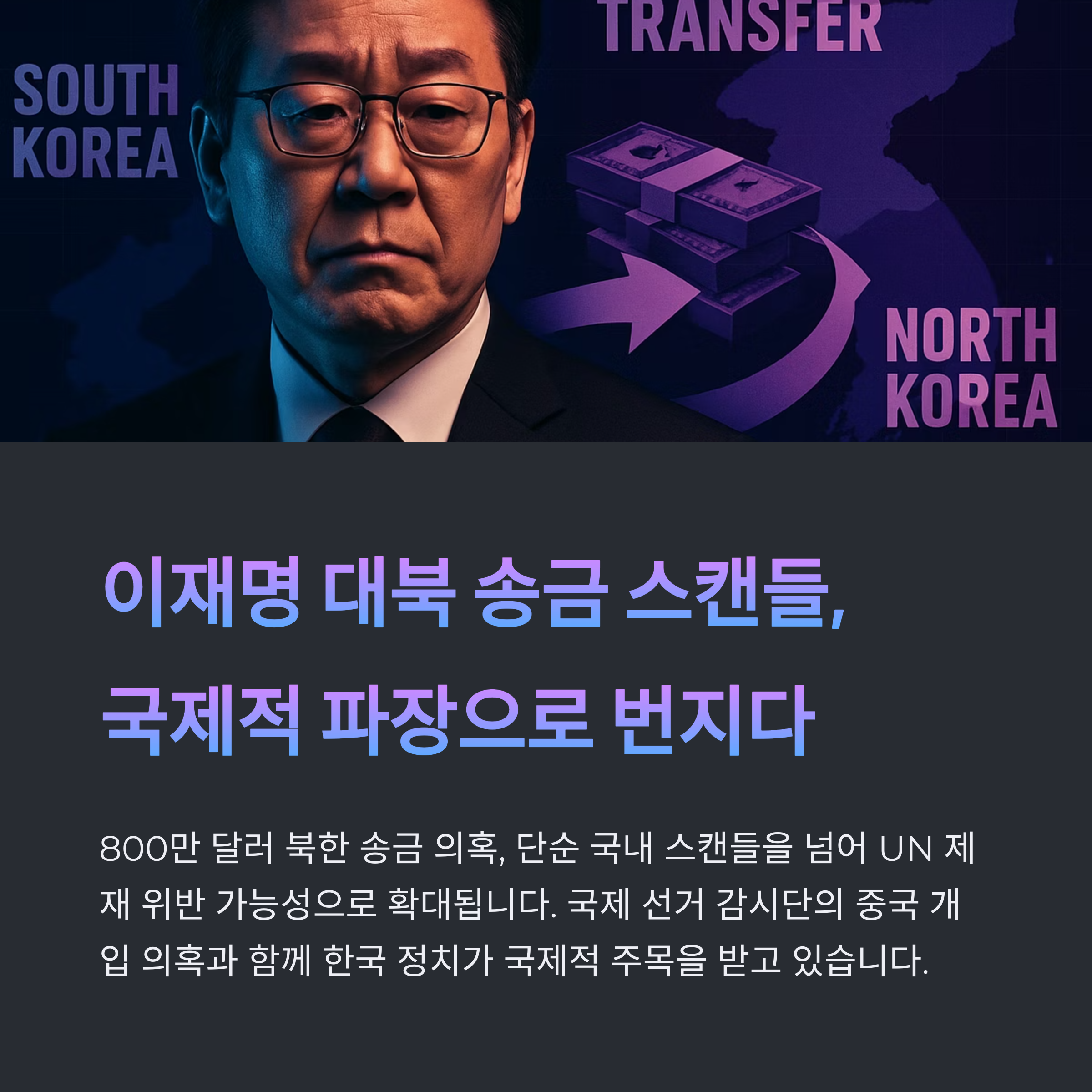 관련 태그: 이재명, 대북 송금, 국제제재, 미국 대북 정책, 중국 선거 개입, 대한민국 대북 정책, 외교 신뢰, 국제법, 유엔 제재