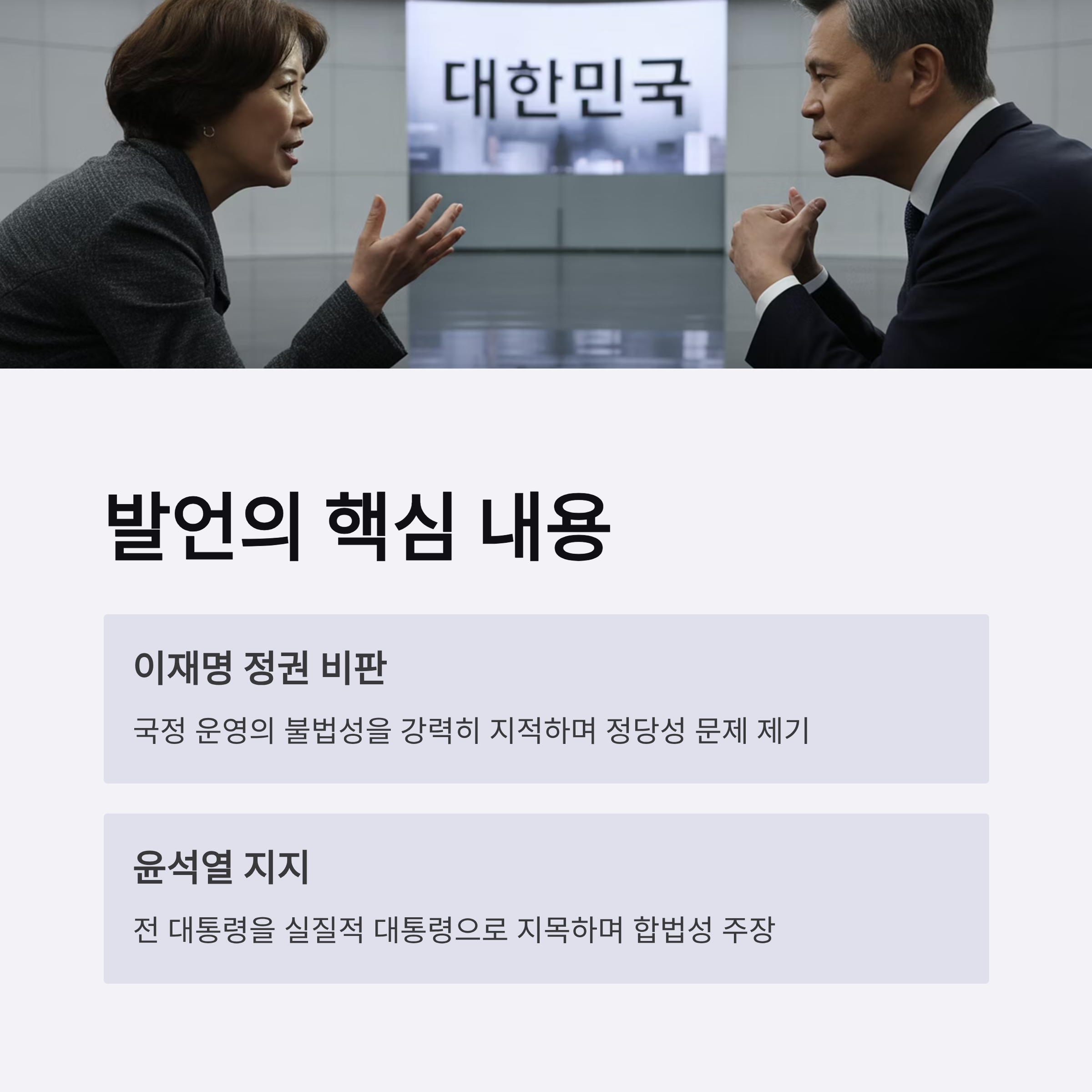 모스탄 대사는 이재명 국정 운영의 불법성을 강력히 비판하며 윤석열 전 대통령의 합법성을 주장했습니다.
