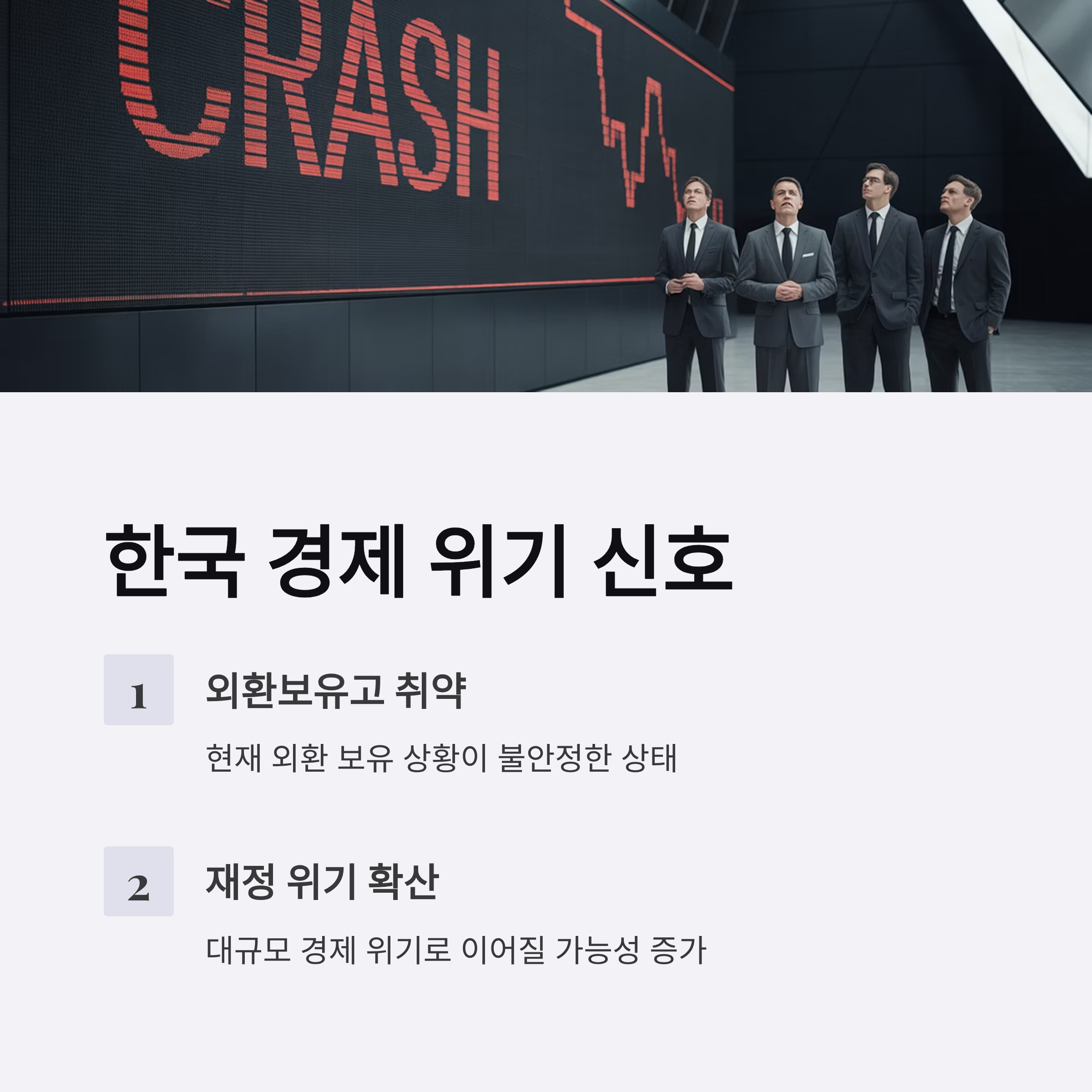 외환 보유고가 취약한 현 상황에서 한국은 재정적 위기가 확산될 가능성을 보이고 있습니다.