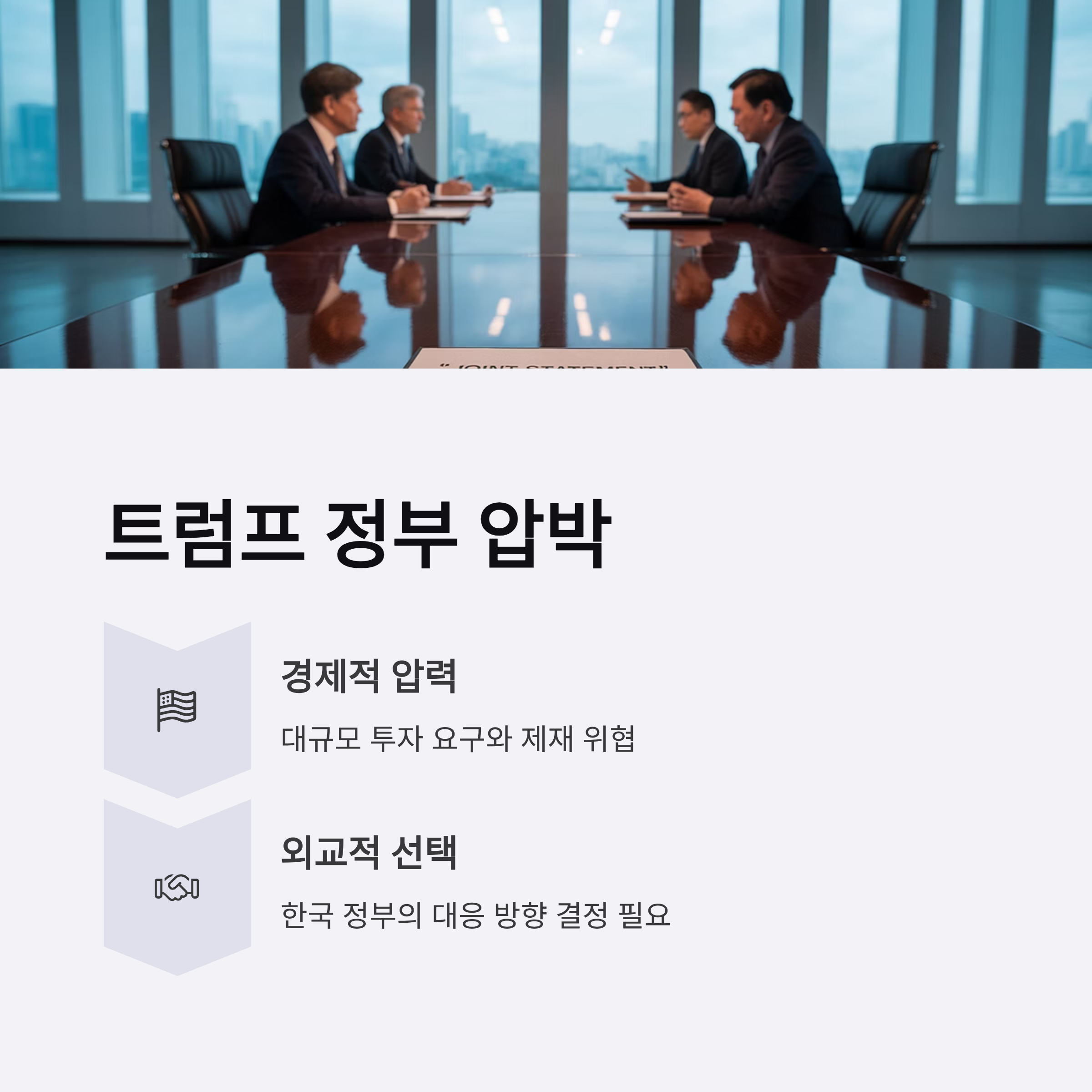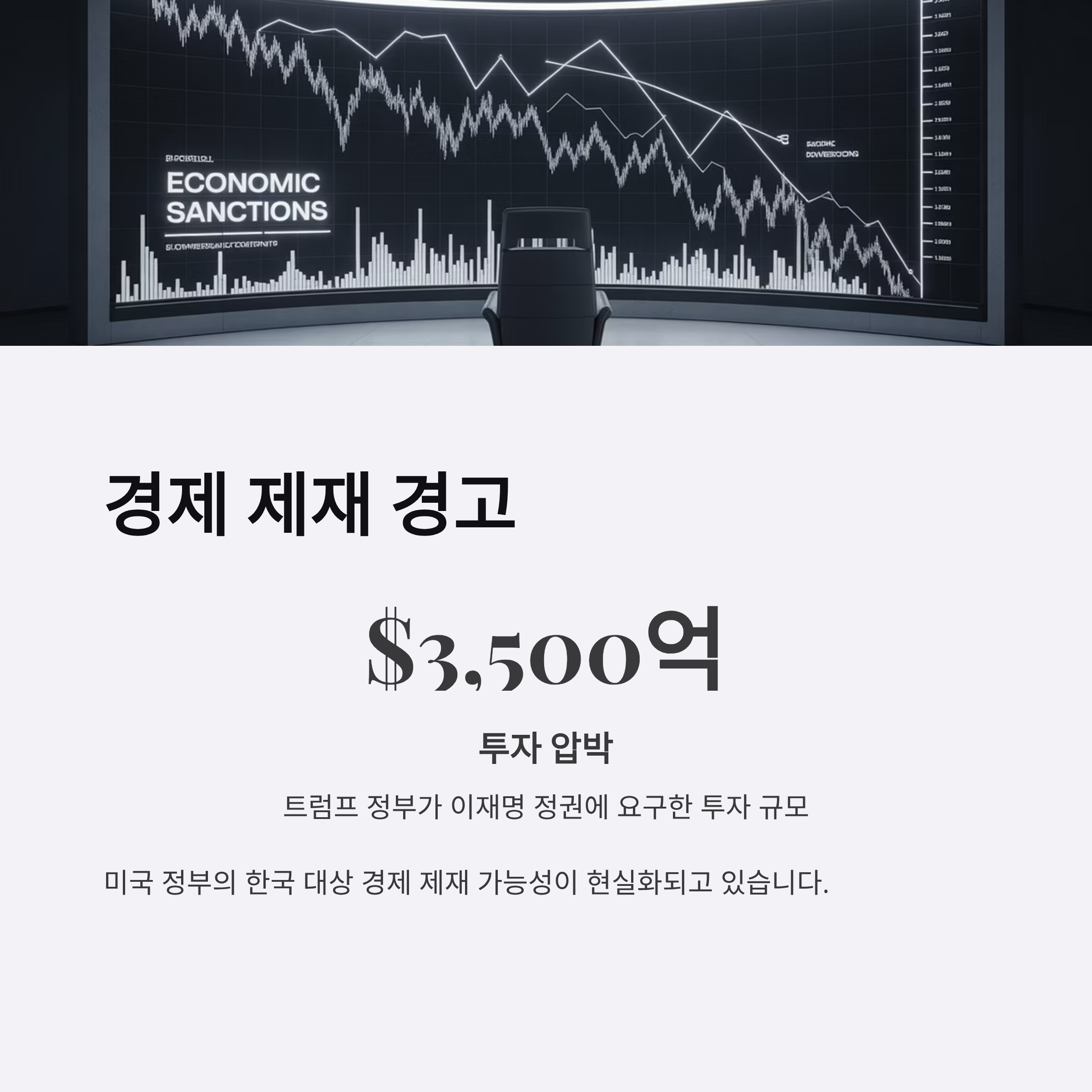트럼프 정부는 한국을 대상으로 경제 제재 가능성을 언급, 이재명 정권에 3,500억 달러의 투자 압박을 가했습니다.