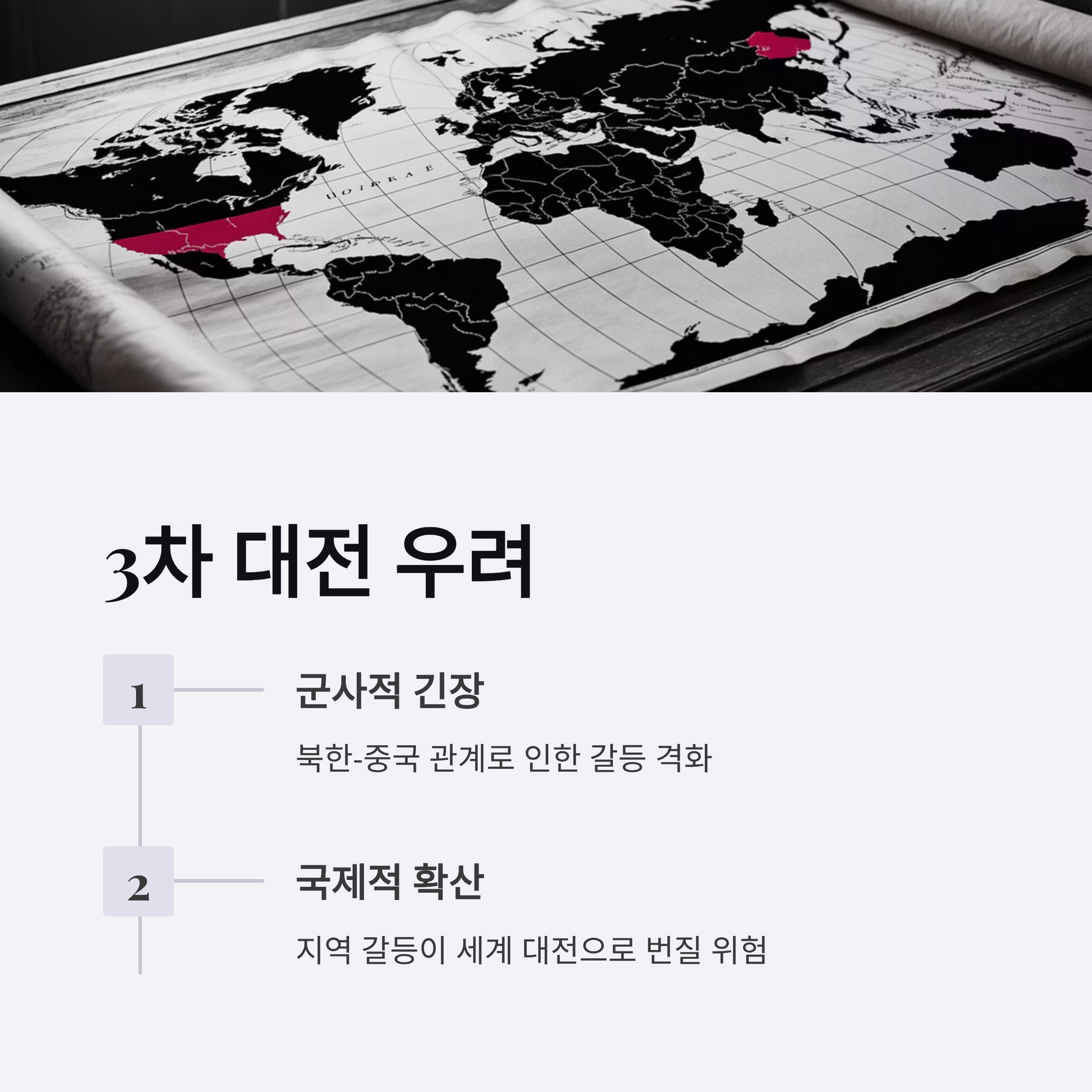 북한과 중국 관계로 인한 군사적 긴장이 격화될 경우 3차 대전까지 확산될 수 있다는 우려가 제기되었습니다.