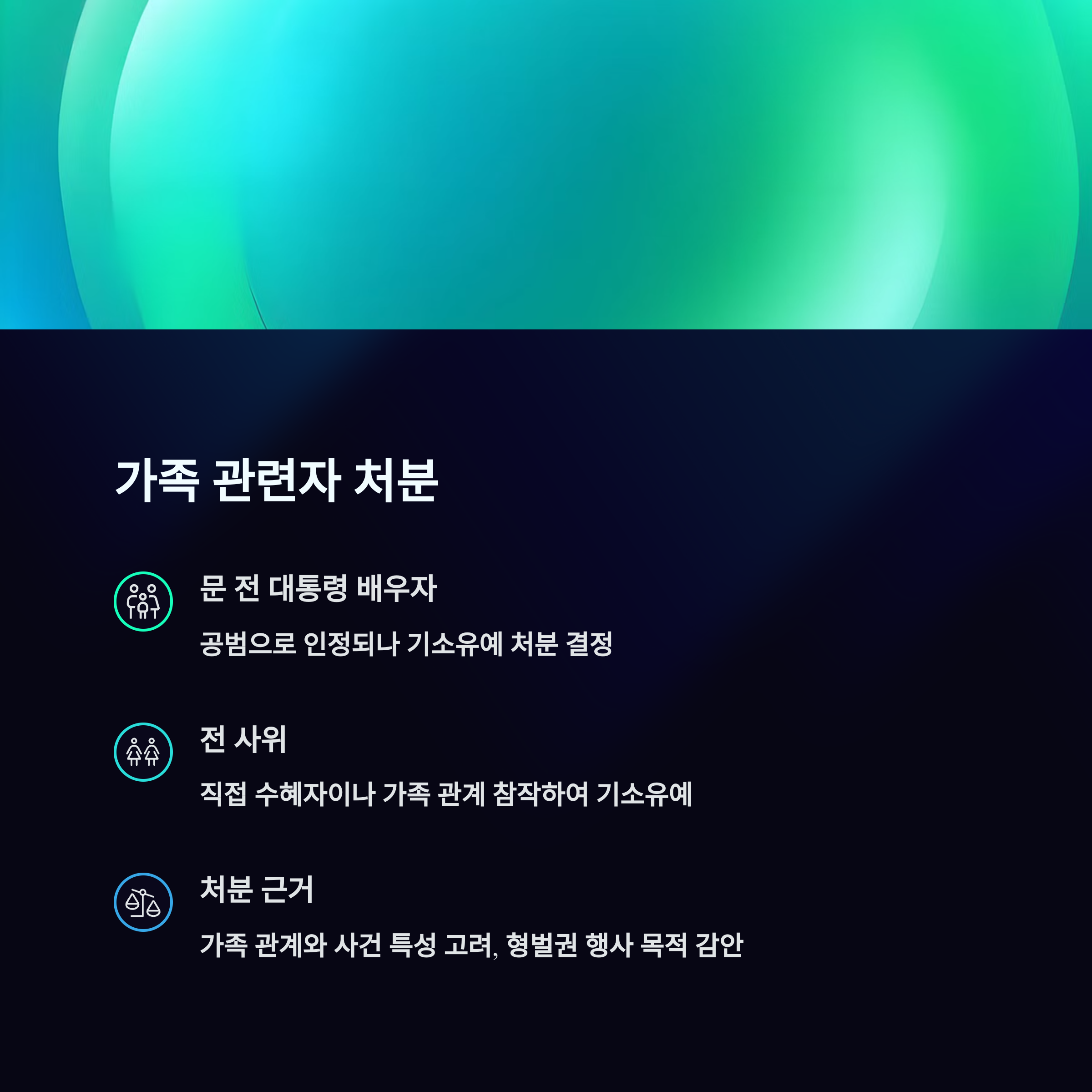 - 배우자와 전 사위가 사건과 연관되어 있지만, 기소유예 처분을 받았습니다.