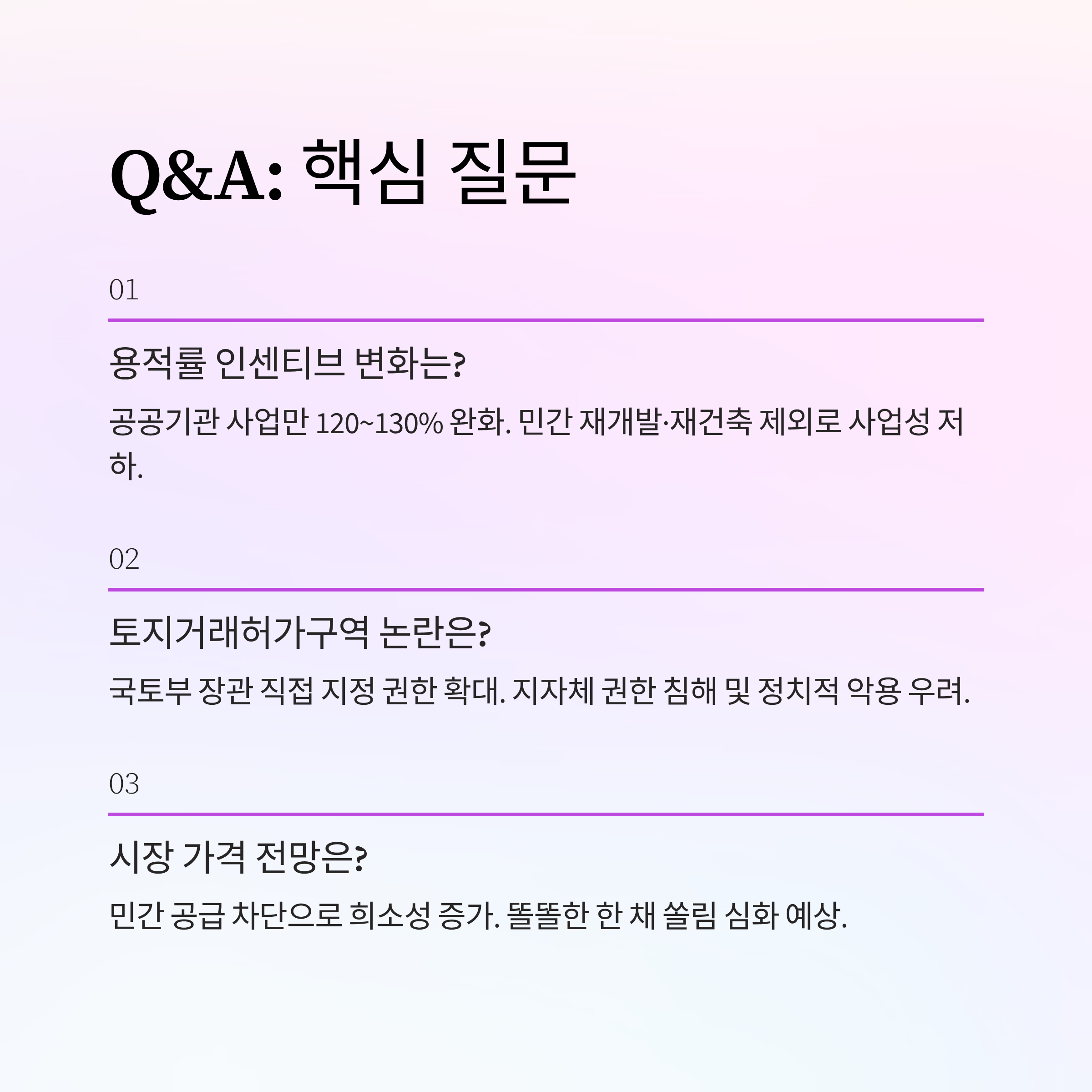 - 5. Q&A: 용적률 변화, 토지거래허가구역 지정권, 시장 전망에 대한 질의응답