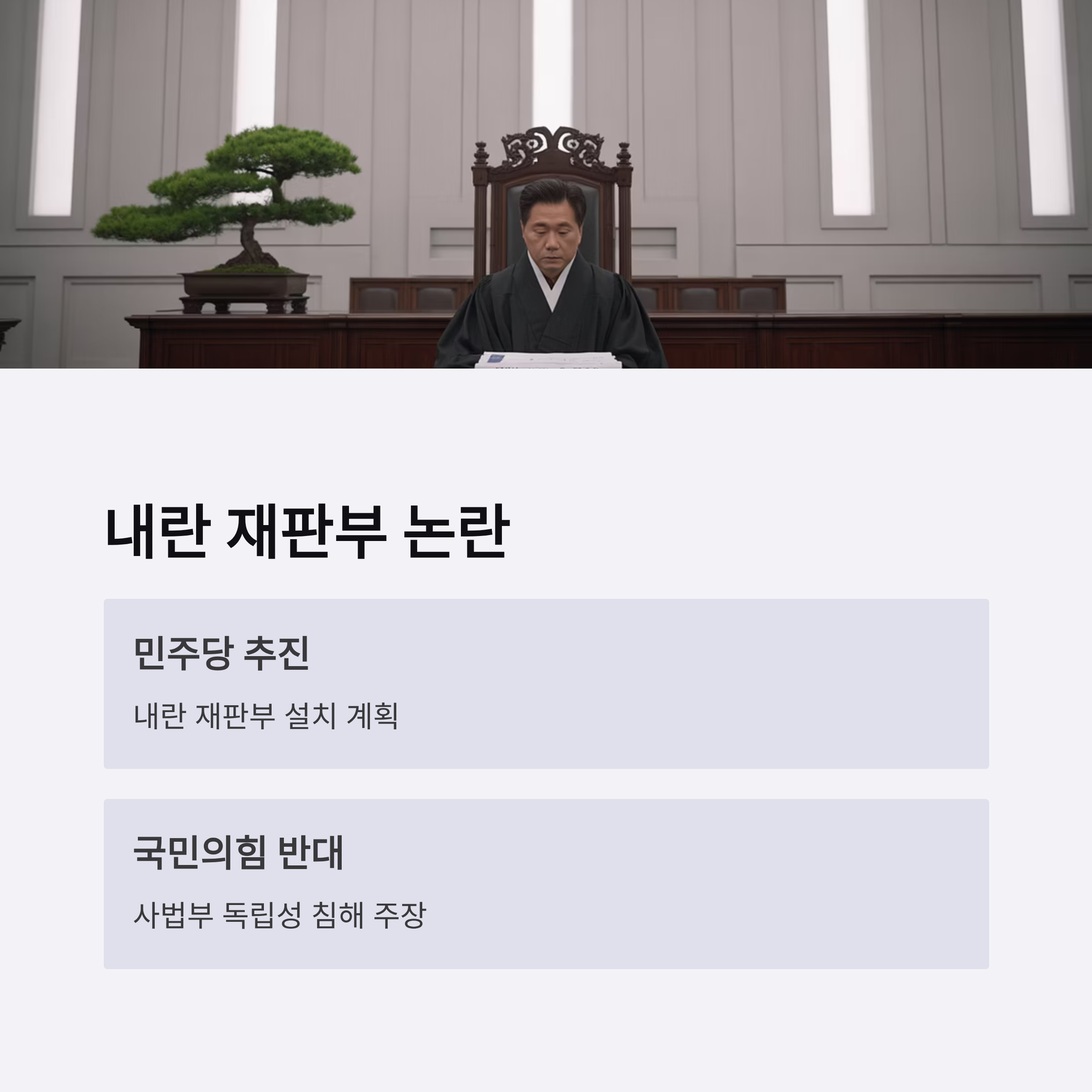 | A. 내란 재판부는 특정 사건을 다루기 위해 구성된 재판부로, 기존의 사법부 체계와 독립성을 넘어서는 잠재적 논란 요소를 가지고 있습니다. |