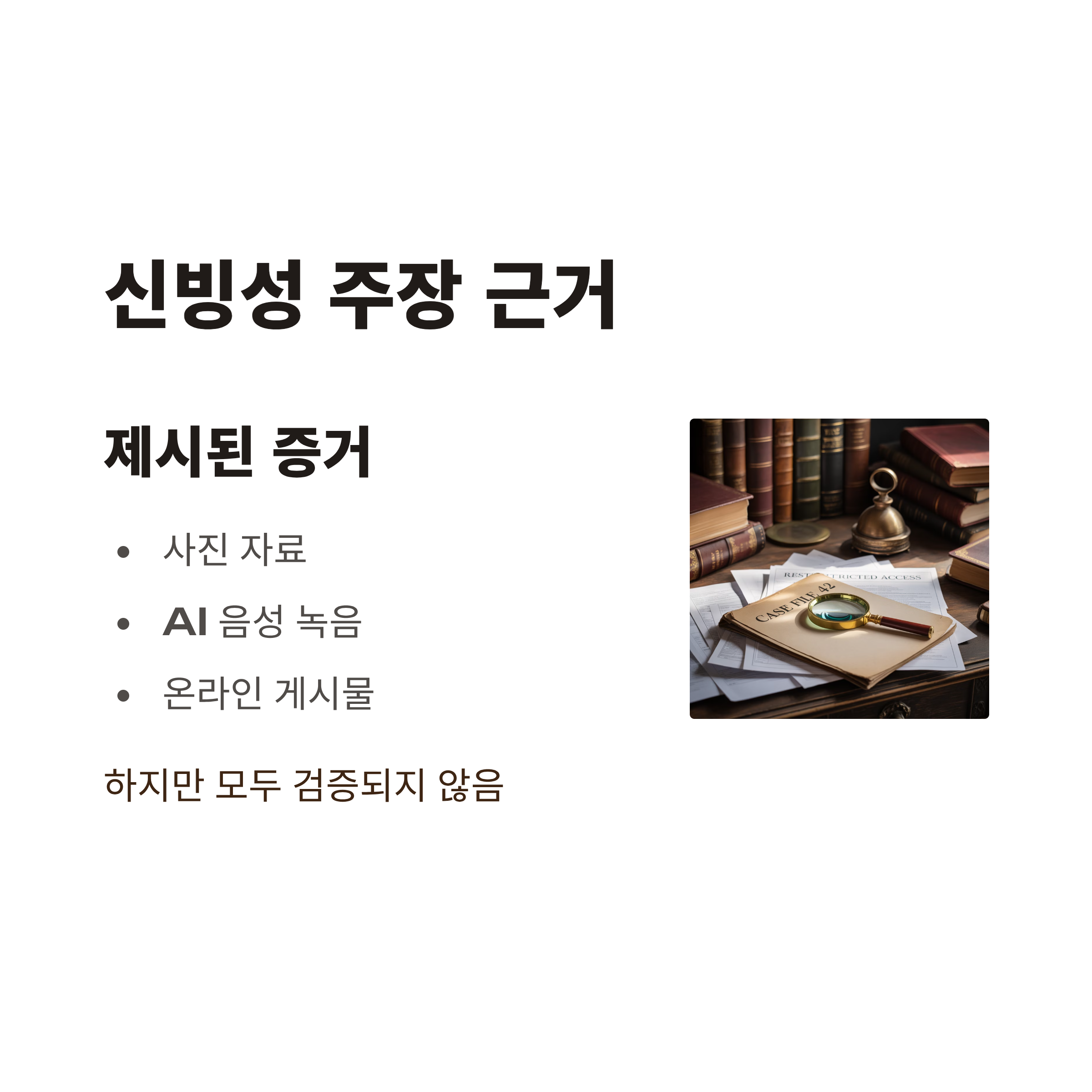| A. 해당 음모론이 사실임을 입증할 구체적 증거가 부족했고, 이를 뒷받침한 유튜브 자료 역시 조작된 AI 음성으로 판명되었습니다. 발언 당사자들도 발언을 철회하며 책임을 인정했습니다. |