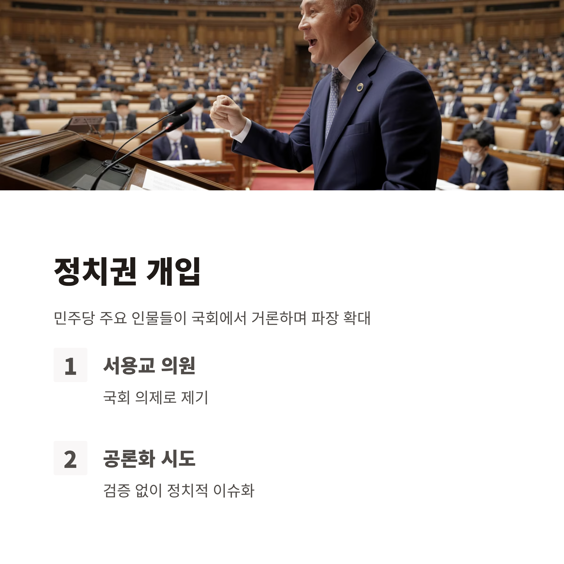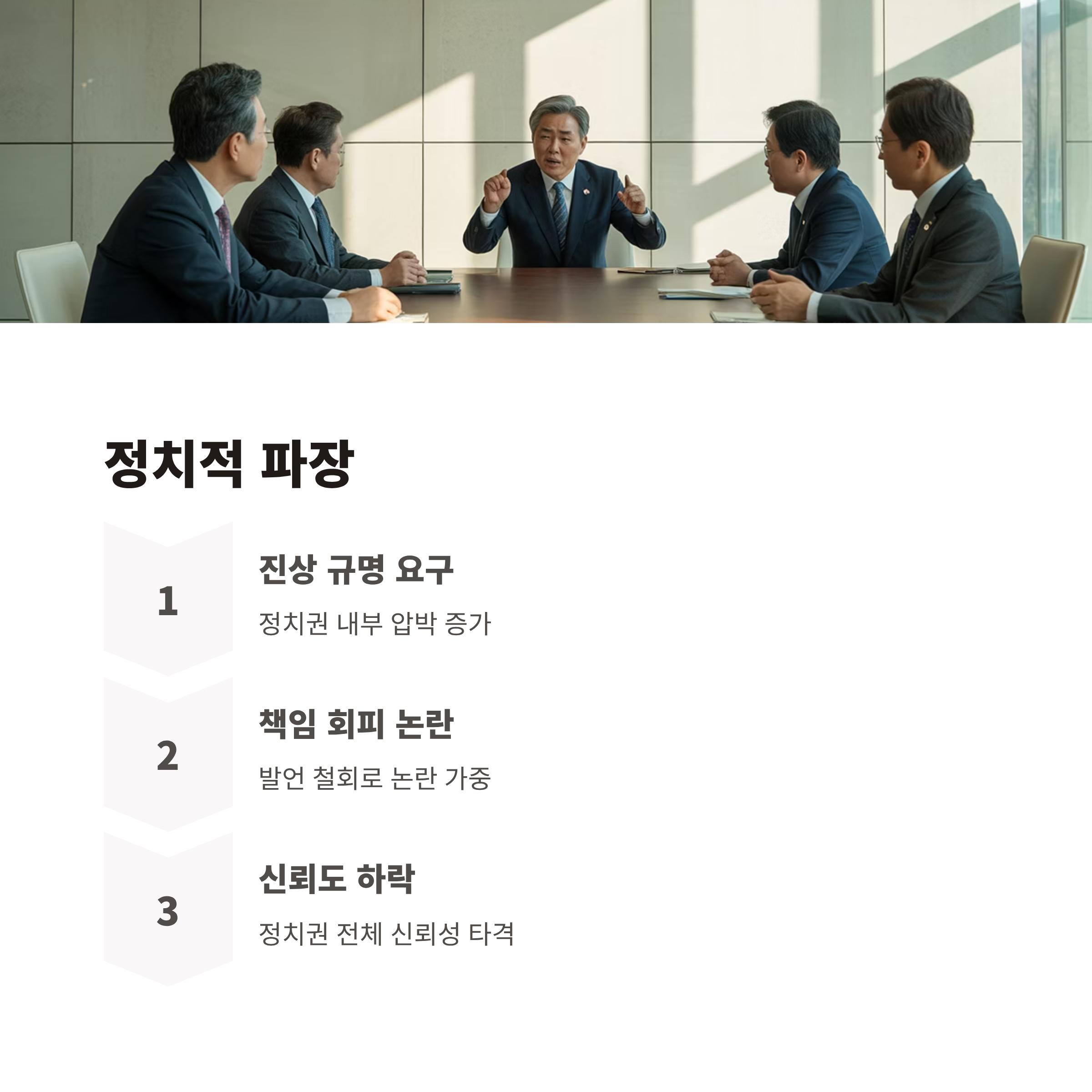 정치권에서 사실 확인 과정을 생략한 채 발언을 공론화했기 때문에 이번 사건은 민주당 내부에서조차 "신중하지 못한 정치적 행위"라는 비판을 받고 있습니다. 결국, 후속 대처 없이 발언이 번복되었고, 이는 정치적 책임과 국민 신뢰 저하라는 이중적 피해로 이어졌습니다.