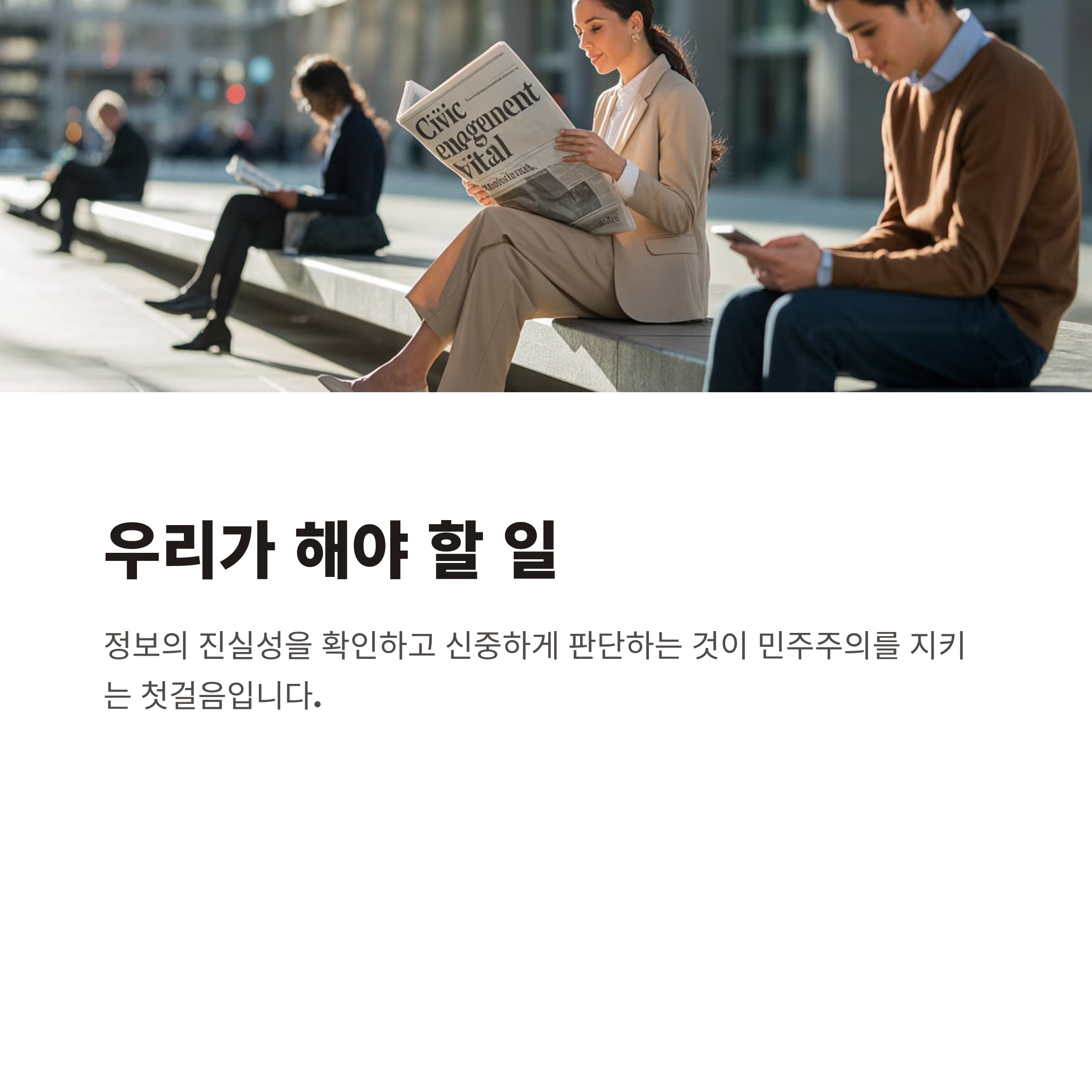 가짜 뉴스의 진상 조사는 단순한 정치적 기싸움에서 끝낼 문제가 아닙니다. 국민에게 피해를 주고, 민주주의에 악영향을 미치는 중대한 문제로 다루어야 하며, 이를 위한 강력한 법적 규제가 요구됩니다.