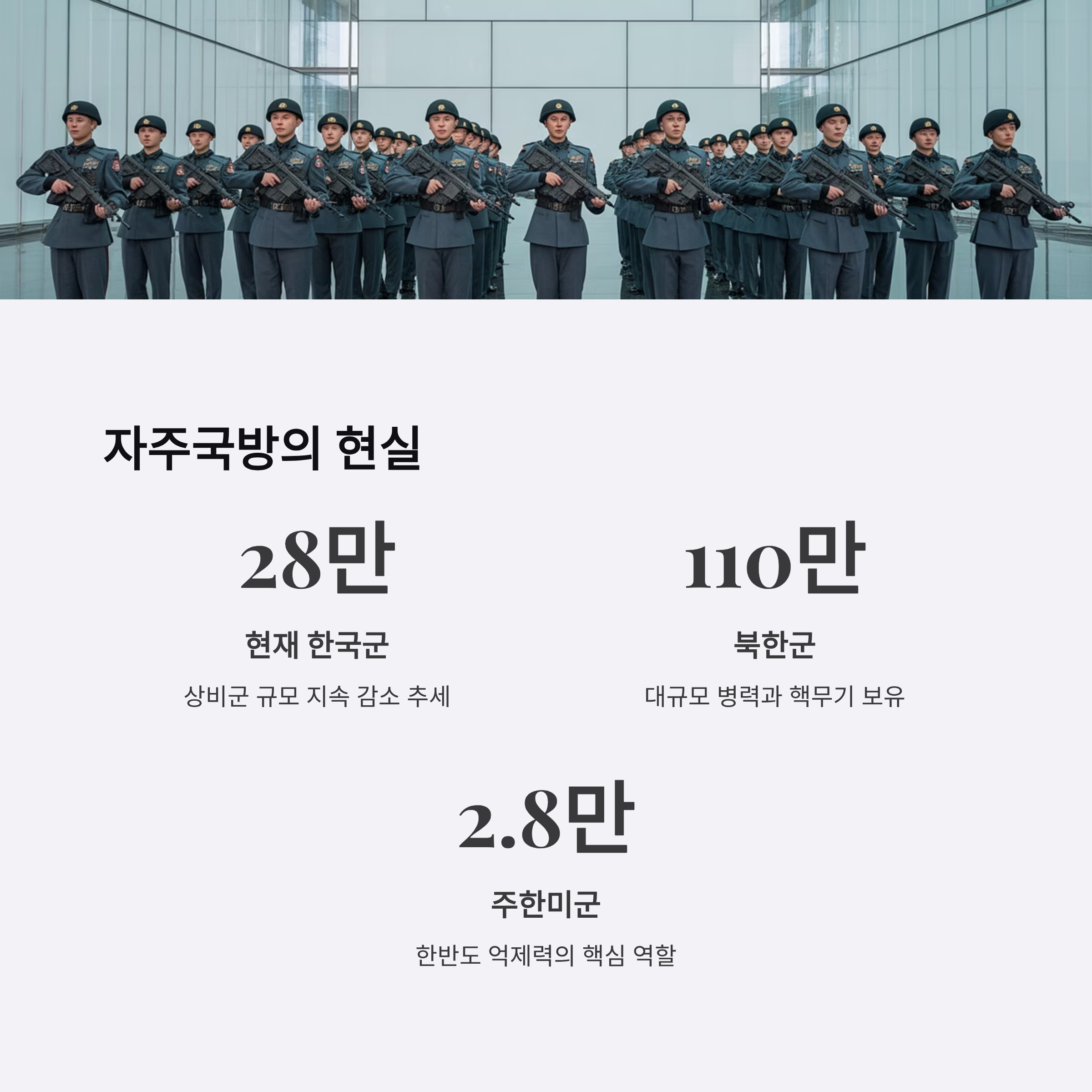 - 북한의 핵 위협과 군사 도발 속에서 자주국방과 한미동맹의 균형이 중요한 국가적 의제로 떠오르고 있습니다.