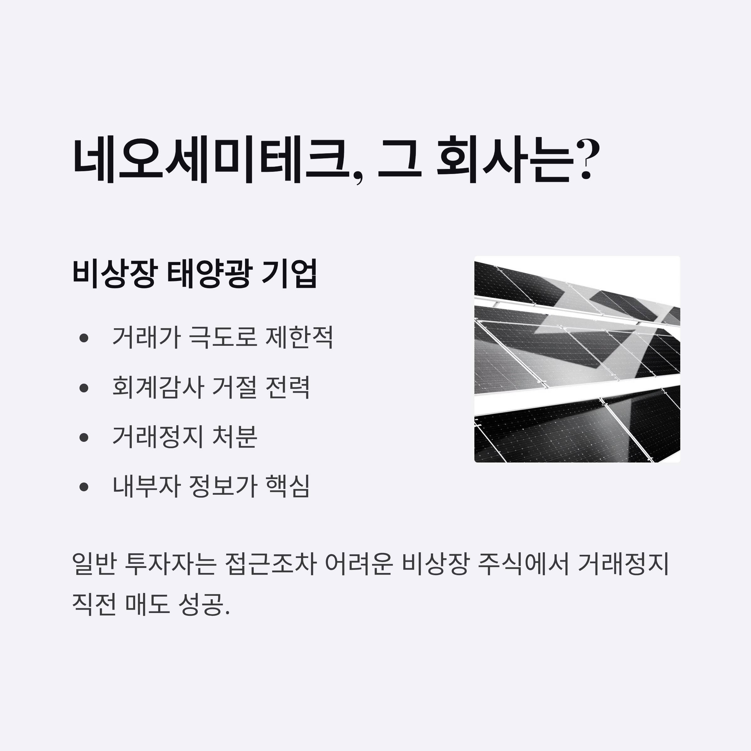 문제가 된 네오세미테크의 주식은 비상장 기업이었으며, 비상장 주식은 거래가 매우 제한적입니다. 일반적으로 이러한 주식은 내부자의 정보 공유가 가능하지 않으면 막대한 수익을 기대하기 어렵습니다. 민중기 특검의 거래가 이루어진 배경을 철저히 조사해봐야 합니다. 특히 내부 감사 진행 이슈와 거래 정지 직전 상황에서 시세 조작 또는 정보 누출 여부를 집중적으로 살펴야 할 것입니다.