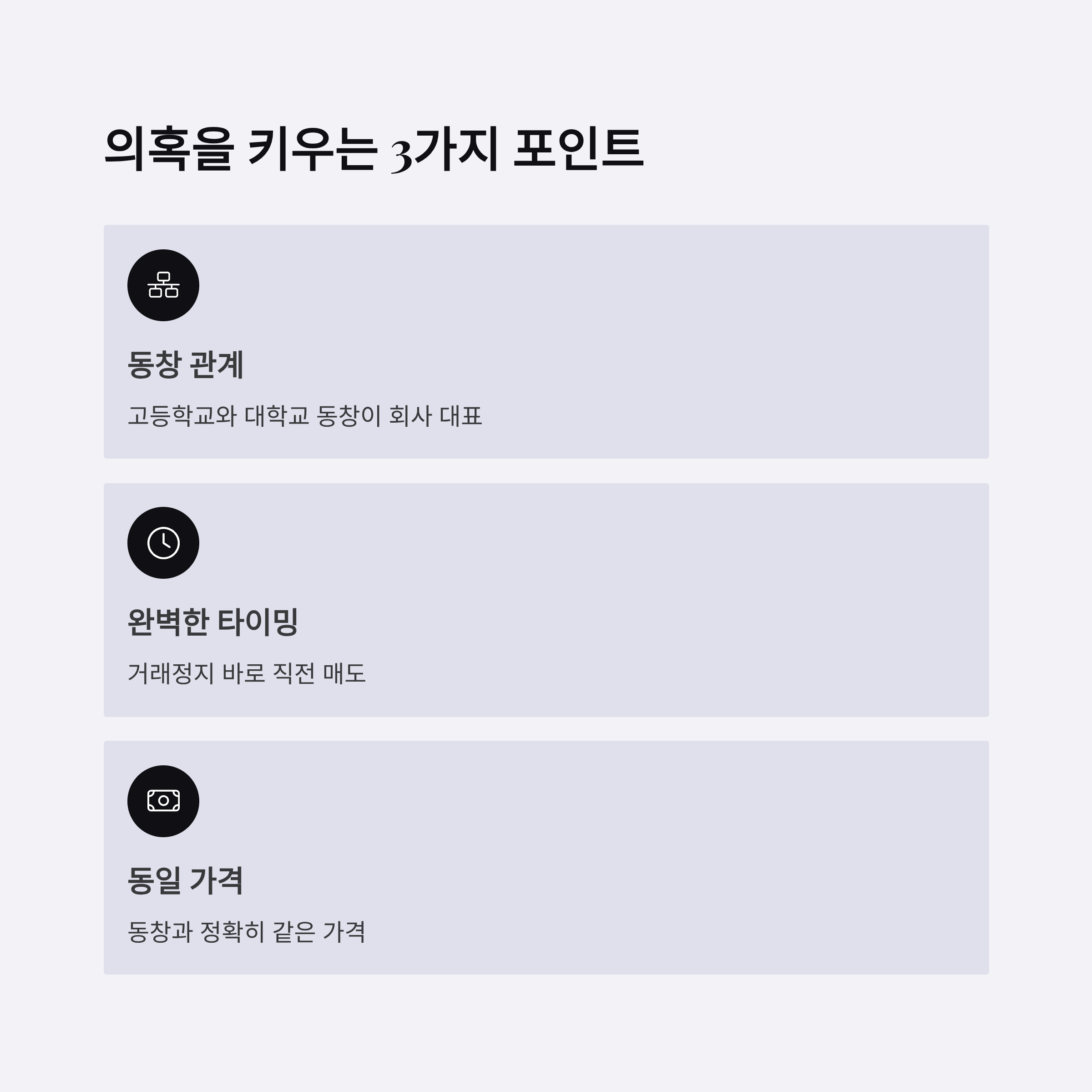 드러난 충격 범죄 의혹, 거래정지 전 동창 사장이 판 주식 가격과 동일