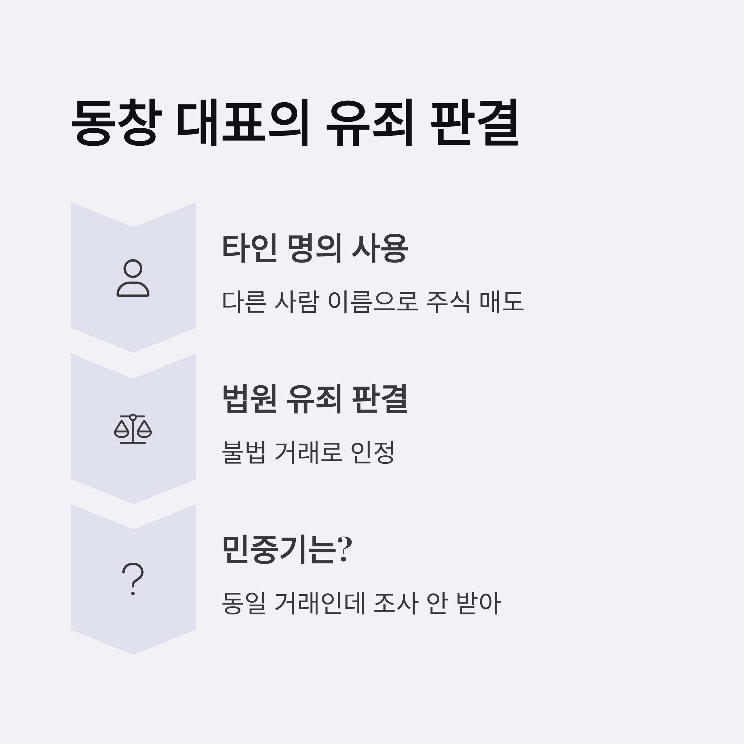3. 동창은 해당 시점에 타인의 이름을 빌려 동일 주식 가격으로 매도한 혐의로 유죄 판결을 받았습니다.