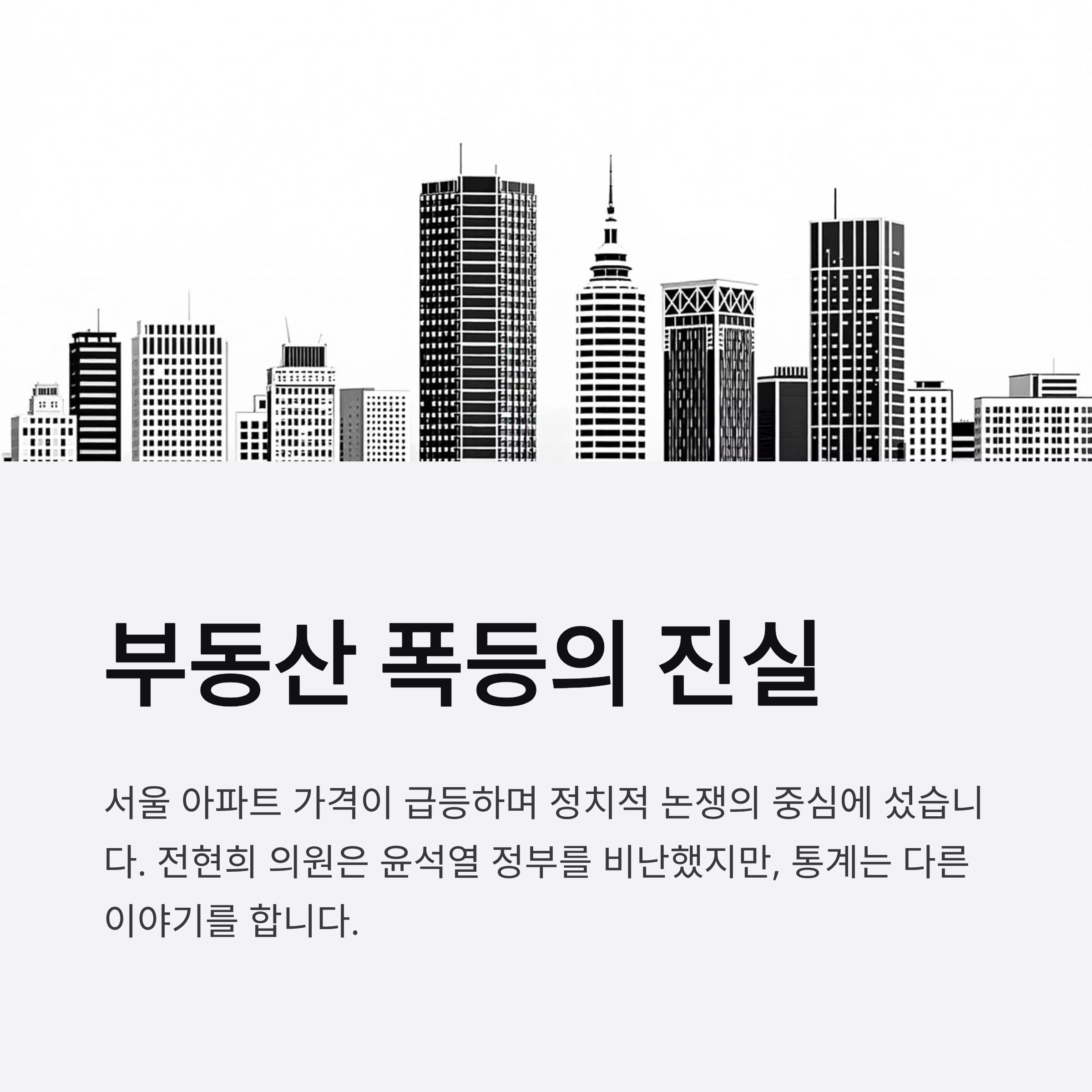 대한민국의 부동산 시장은 최근 극심한 등락을 겪으며 정치적 논쟁의 중심에 서 있습니다. 특히 서울 같은 수도권의 주택 가격 변동은 경제 문제를 넘어 정치적 신뢰와 책임의 문제로 확대되었습니다. 최근 민주당의 전현희 의원이 윤석열 정부와 오세훈 서울시장을 겨냥해 집값 폭등 책임을 묻는 발언을 했습니다. 이런 상황은 정치적 공방으로 이어져 국민들의 혼란을 가중시키고 있습니다. 본 글은 전현희 의원의 발언을 면밀히 분석하여 실체적 사실과 정치적 책임의 이점을 조명하고 문제 해결 방향을 제안하려 합니다.