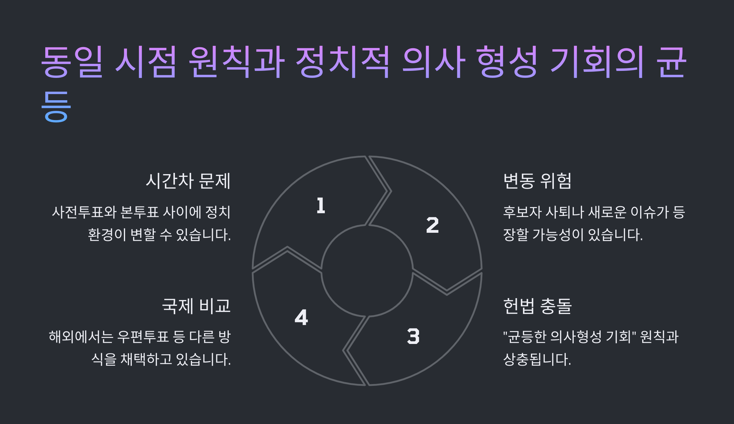 - 비밀선거 침해 및 동일 시점 원칙 논란