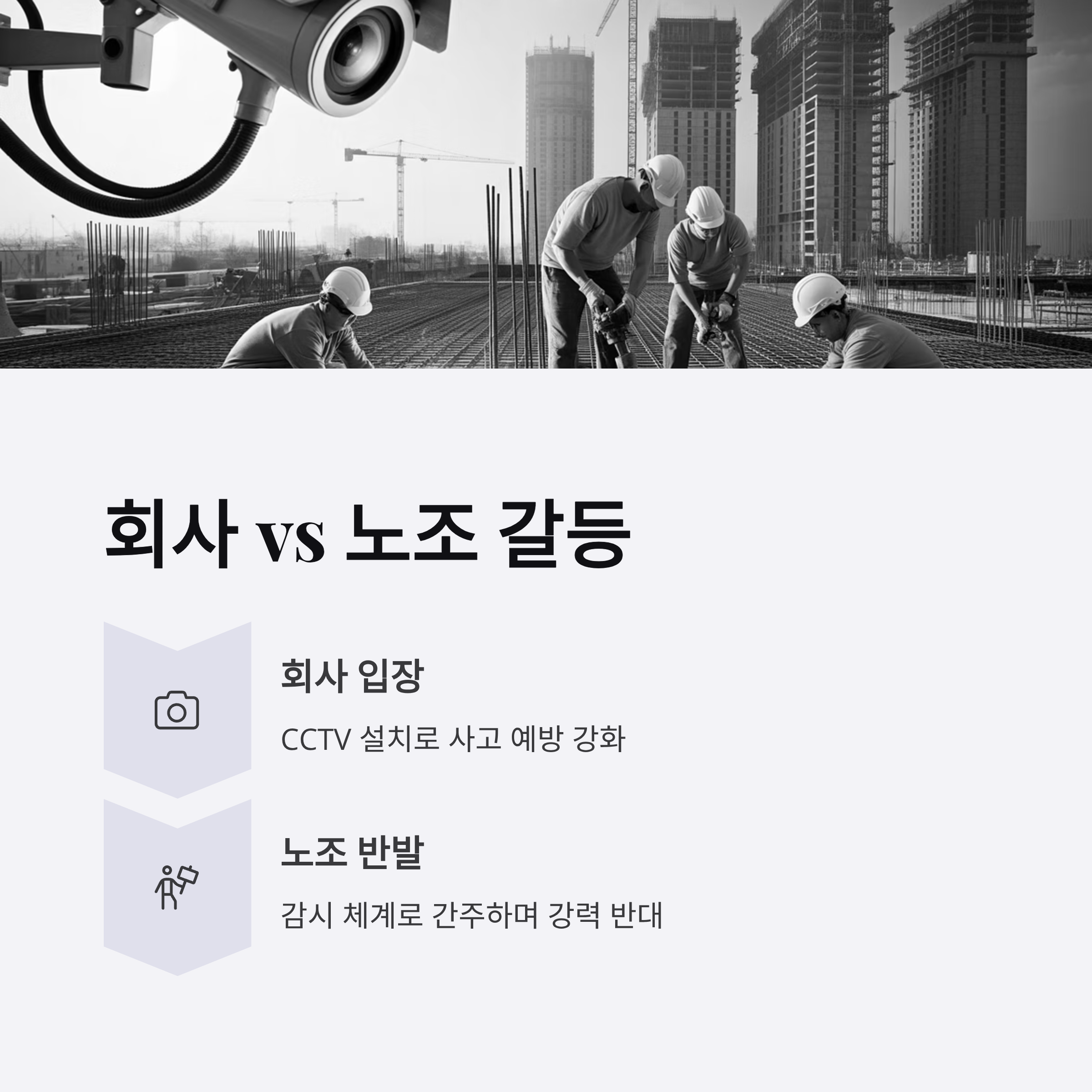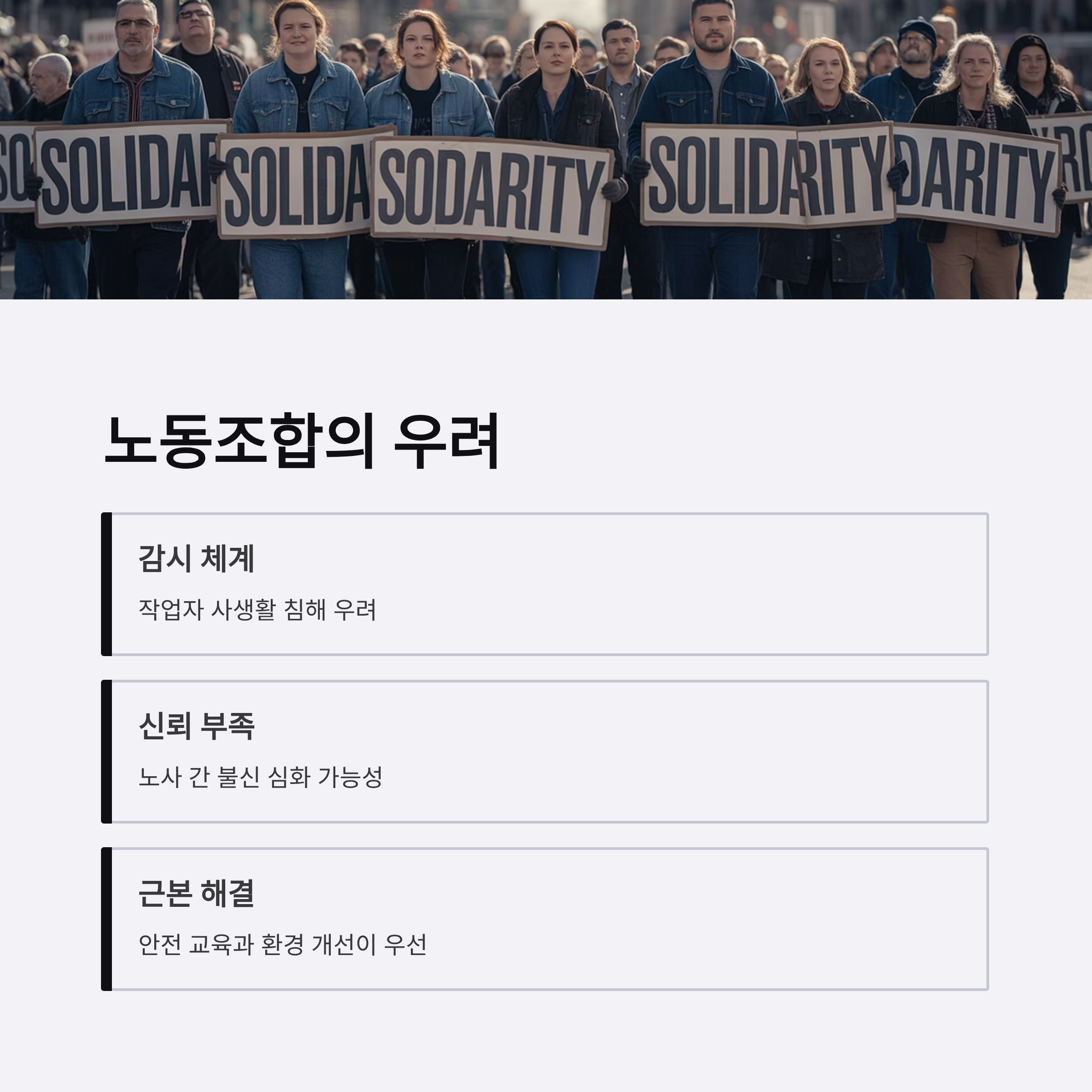 - 회사 측은 사고 예방을 위해 CCTV 설치와 같은 모니터링 강화 방안을 제시하지만, 노동조합은 이를 감시로 간주하며 반발하고 있습니다.