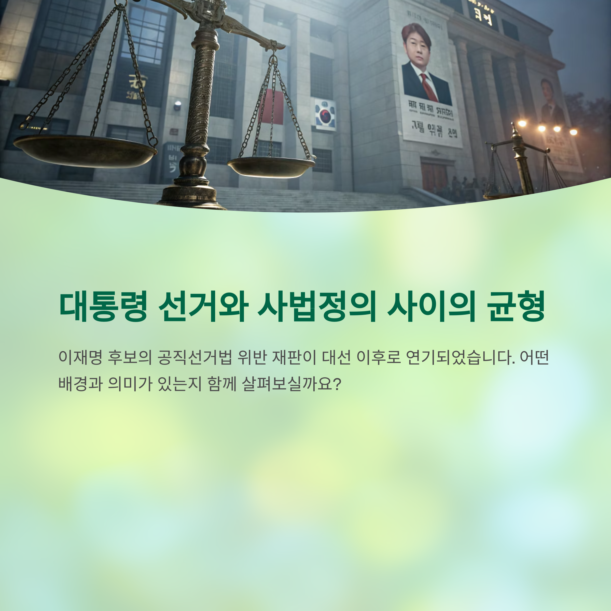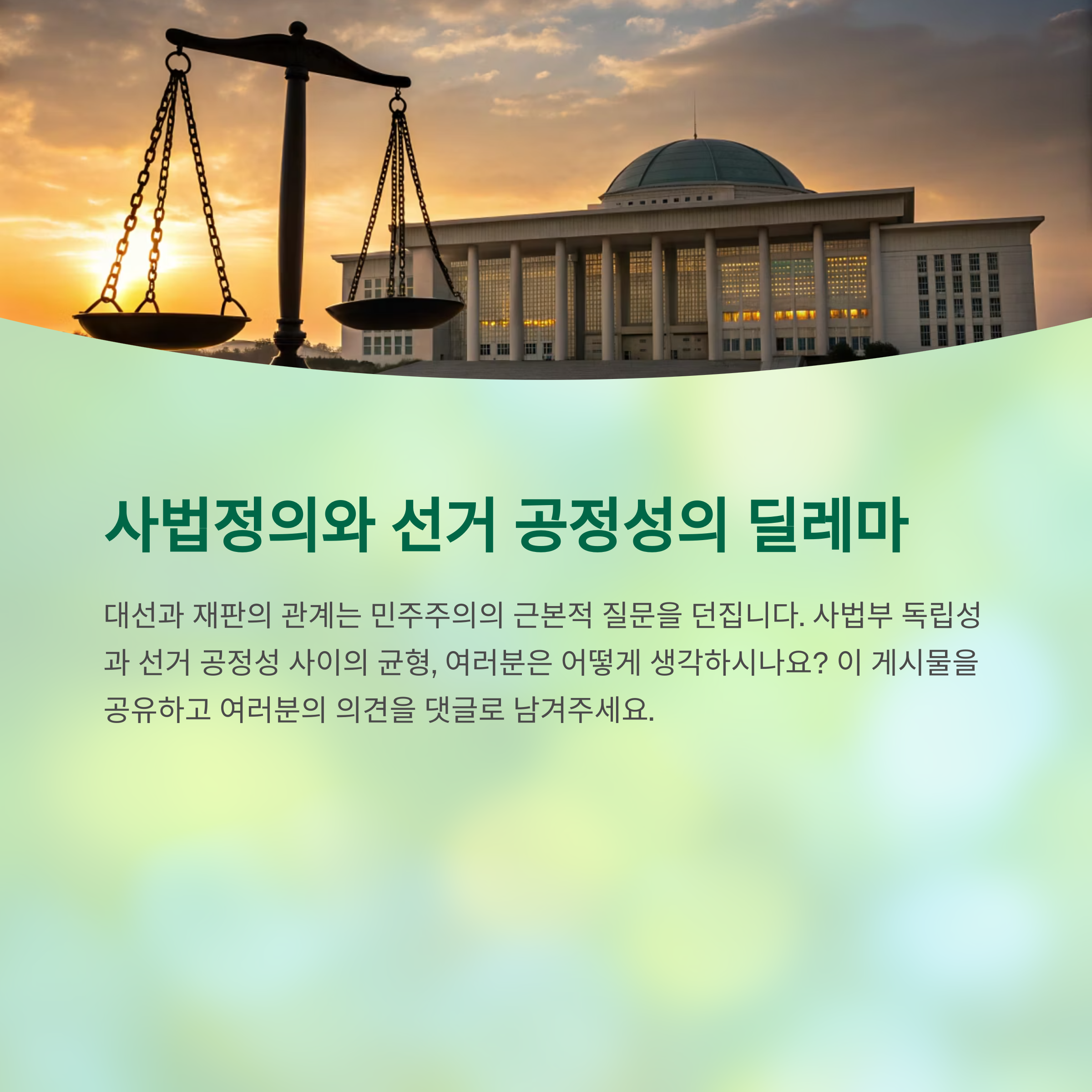 이번 결정은 재판 독립성 및 공정한 선거운동의 기회 보장이라는 두 가지 헌법적 가치를 어떻게 균형 있게 다룰 것인지에 대한 대중적 논쟁을 불러일으키고 있습니다. 향후 재판 및 대선 과정에서 모든 당사자가 헌법과 법률을 준수하며 공정하게 임하는 것이 무엇보다 중요한 시점입니다.