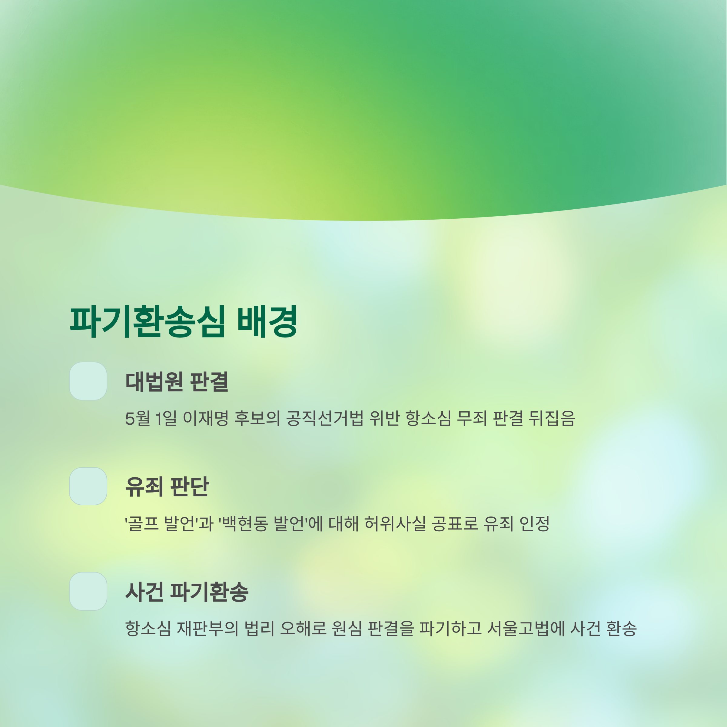 파기환송은 법률적 오류나 판단이 있었음을 뜻하며, 이는 재판부의 공정하고 면밀한 재검토를 요구합니다. 따라서 이번 사건은 단순히 이재명 후보 개인의 문제가 아니라, 공직선거법 위반과 재판의 독립성을 검토하는 중요한 기회로 작용할 것입니다.