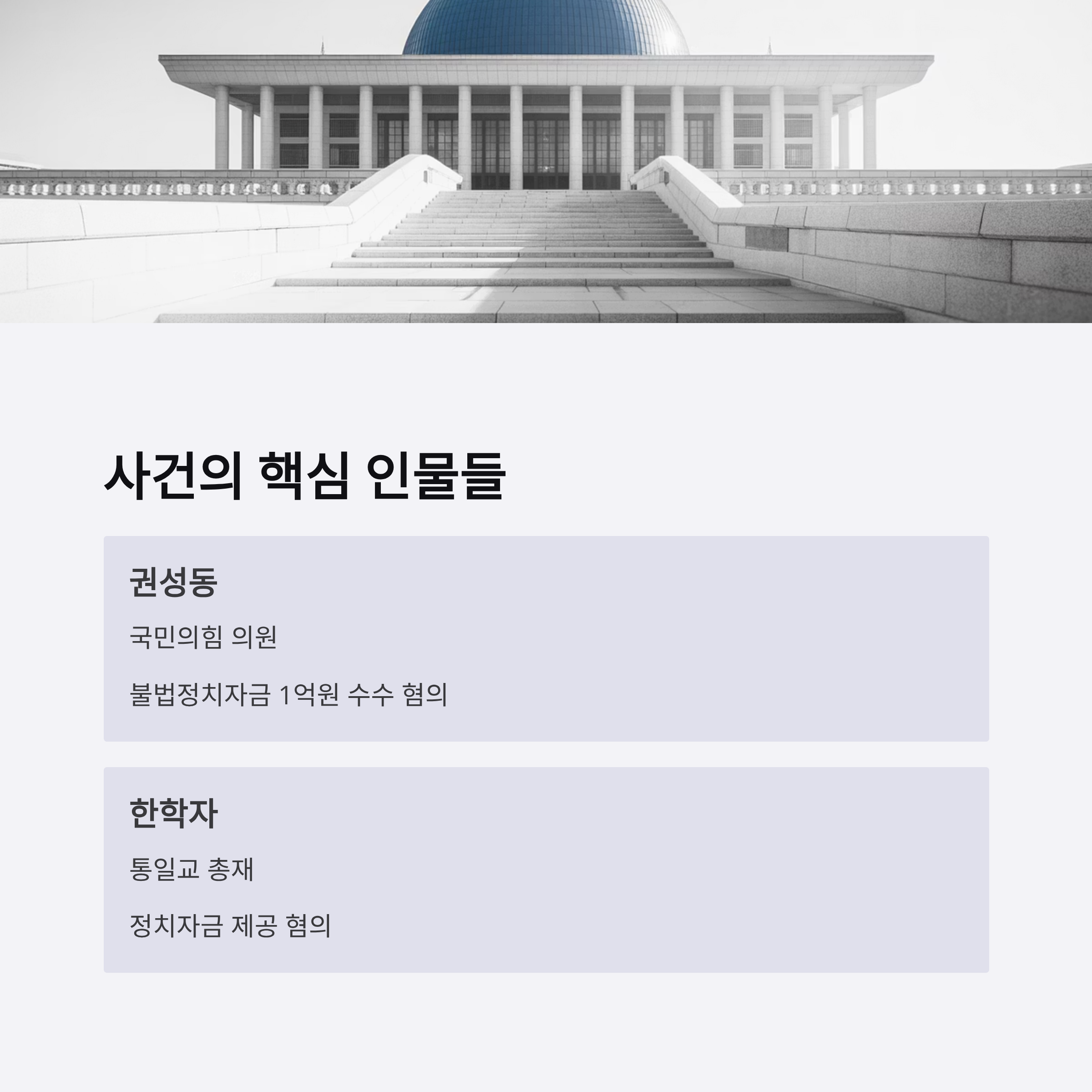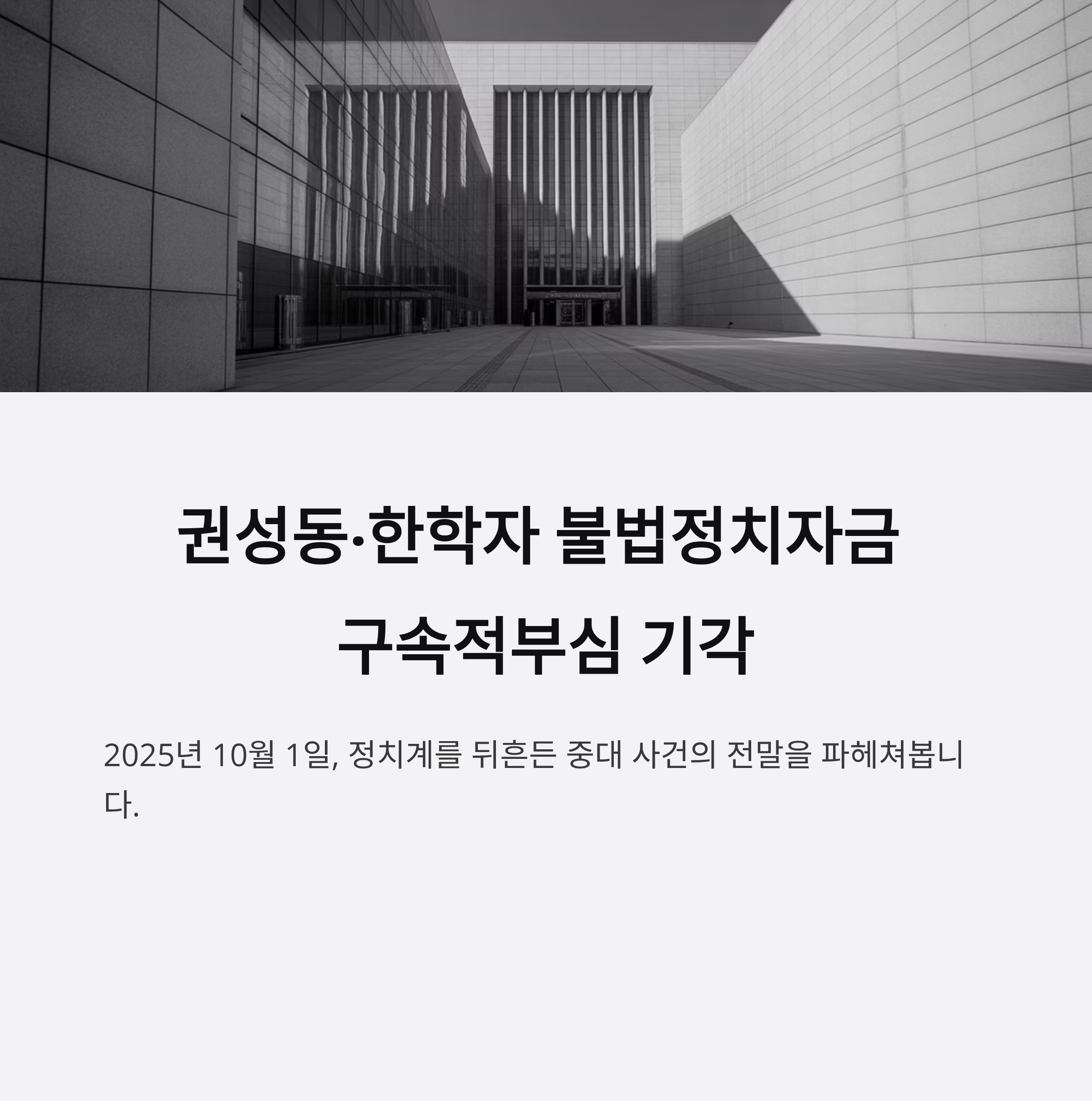 2025년 10월 1일, 대한민국 정치계는 중대한 사건으로 주목받고 있습니다. 권성동 국민의힘 의원과 한학자 통일교 총재가 불법 정치자금 수수 및 제공 혐의로 구속 상태에 놓였으며 이들의 구속적부심 청구가 기각되었습니다. 이번 사건은 단순한 정치자금법 위반을 넘어 통일교와의 연계성, 그리고 윤석열 정부와의 관계를 둘러싼 의혹을 낳으며 관심을 끌고 있습니다. 이 글은 사건의 배경, 주요 혐의, 그리고 법원의 기각 사유를 중심으로 정치적 및 법적 의미를 심층적으로 분석하며, 향후 전망을 살펴볼 것입니다.