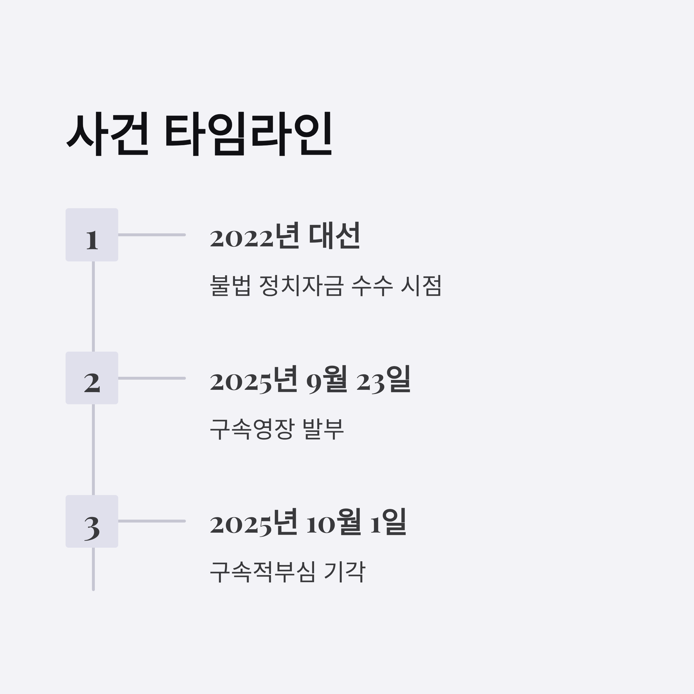 4. 구체적인 불법금 전수 날짜와 금액이 밝혀졌으며, 2025년 9월 23일에 구속영장이 발부된 뒤 10월 1일 기각 결정을 받았습니다.