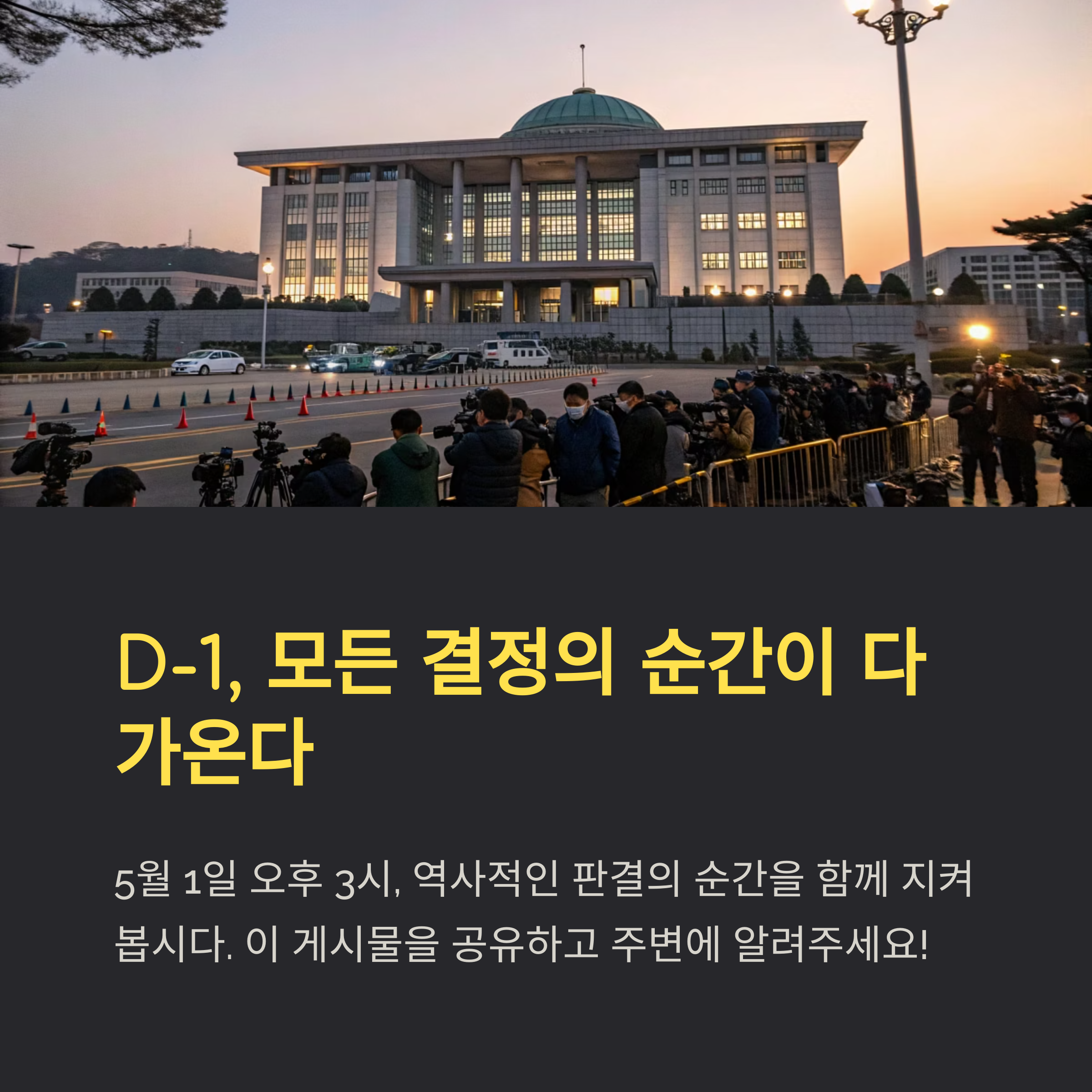 1. 대법원은 5월 1일 오후 3시에 이재명 대표 상고심 결과를 선고할 예정입니다.