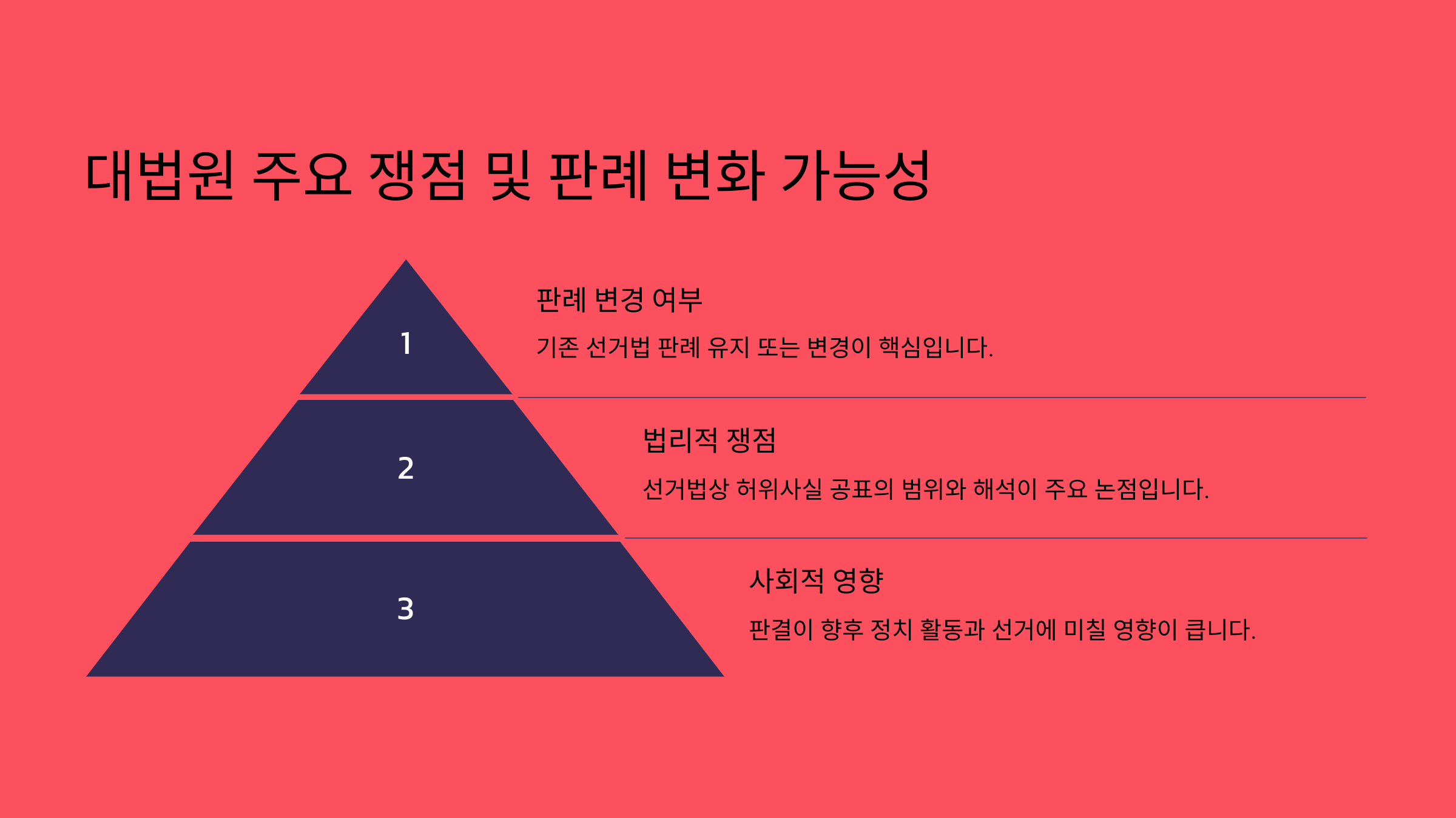 ✔️ 대법원의 판단: 기존 판례 변경 가능성과 사회적 파급력이 판결 과정의 핵심 변수가 될 것.