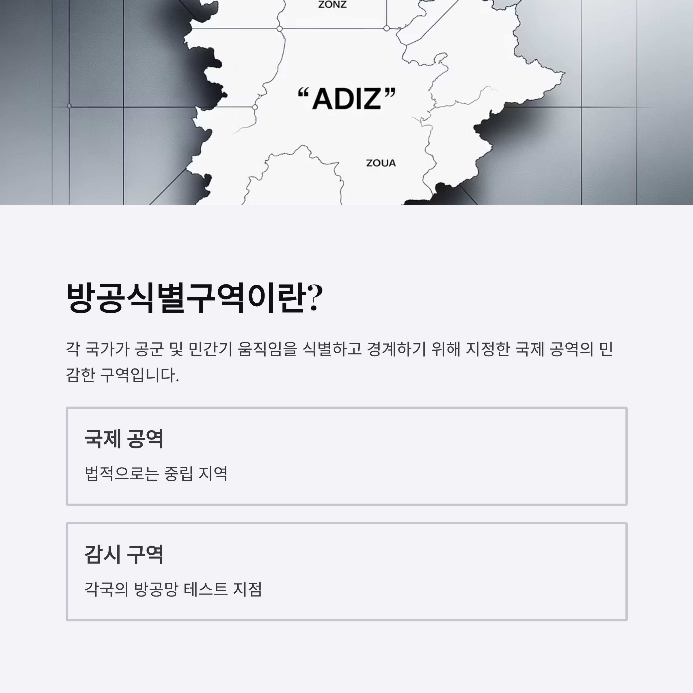 | A. ADIZ는 국제 공역에 설치된 방공식별구역으로, 이 지역에서의 비행은 국제법상 위반이 아닙니다. 다만, 국가 간 군사적 갈등을 유발할 수 있는 민감한 행위로 간주됩니다. |