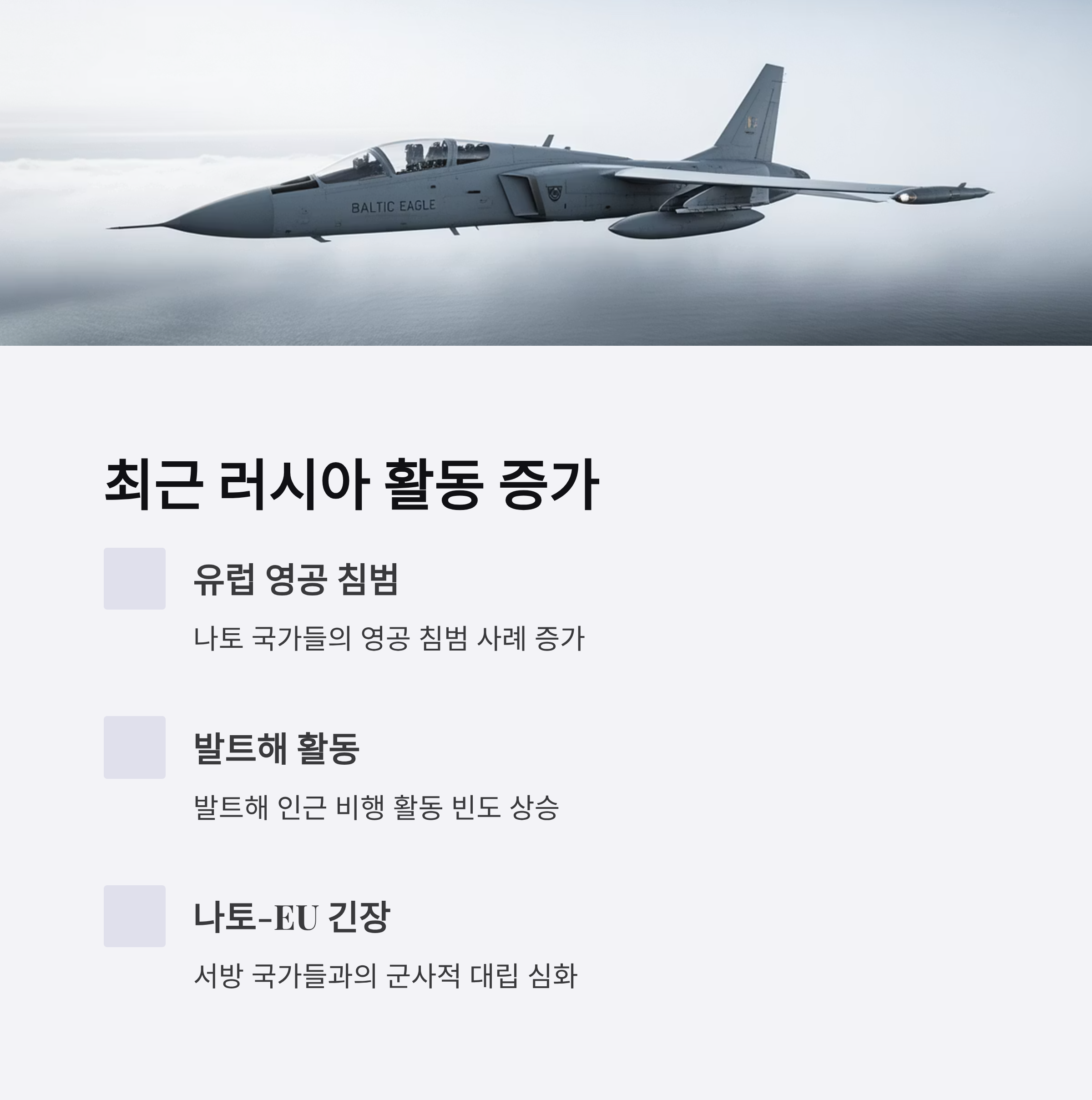 - 최근 러시아는 유럽 내 영공 침범과 발트해 인근에서의 비행 활동을 늘리며 나토 및 EU와의 긴장을 고조시키고 있습니다.