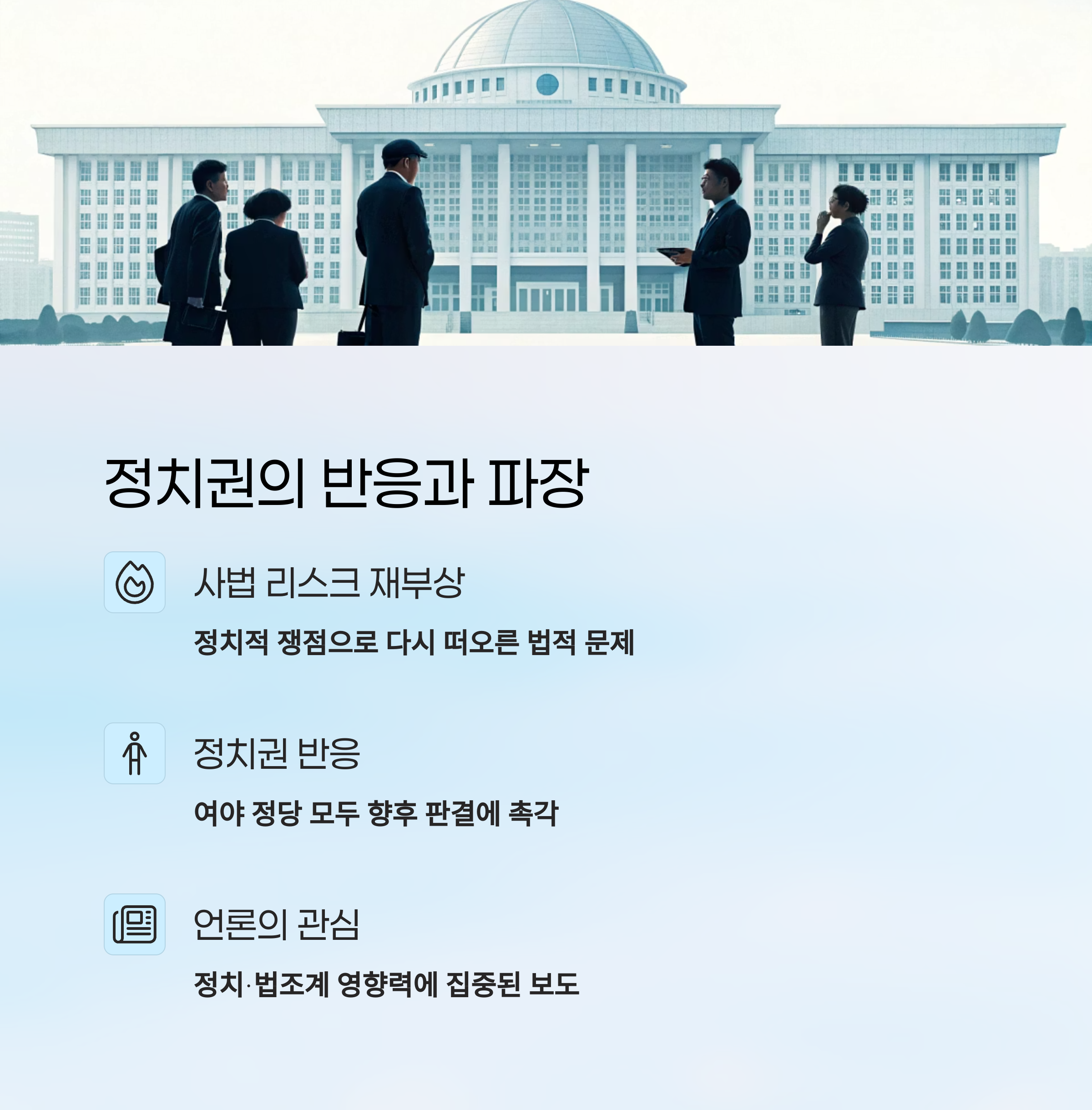 - 정치적 영향: 사법 리스크가 대선 구도의 변수로 작용하며 여야의 전략에도 변화 예상